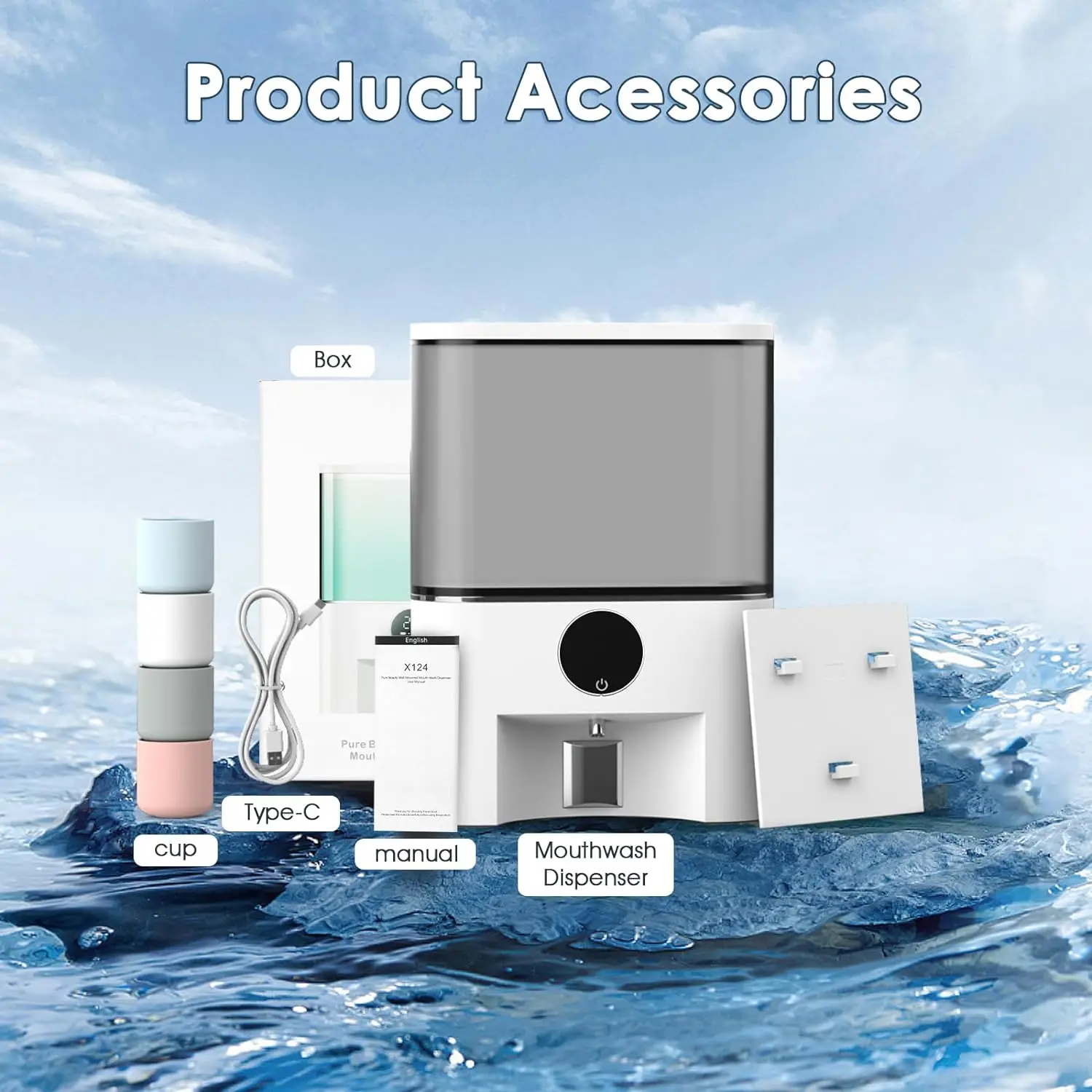 500ml Smart with Cups Mouthwash Dispenser Electric Mouthwash Dispenser Set for Bathroom Automatic for Bathroom with Cups