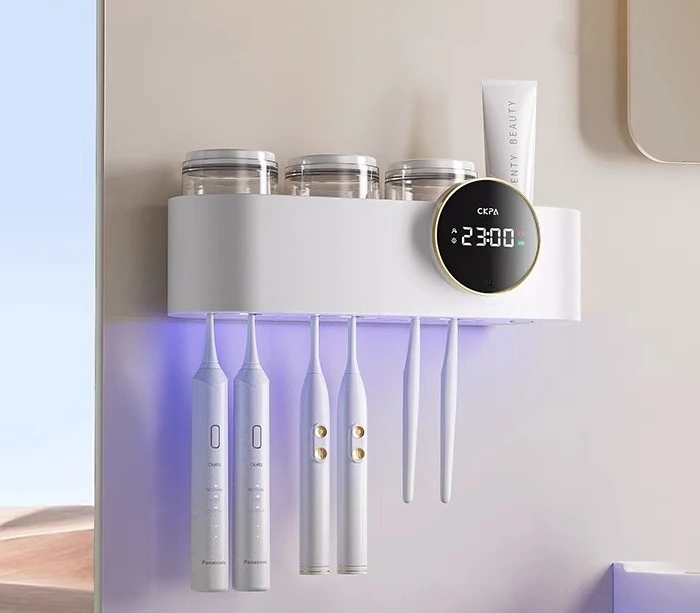 Smart UV-C Toothbrush Sanitizer Disinfectant Holder Hot Air Sterilizer Time Display Fan Drying Wall-Mounted 30-Day Battery Life