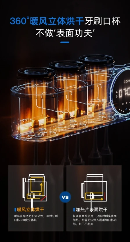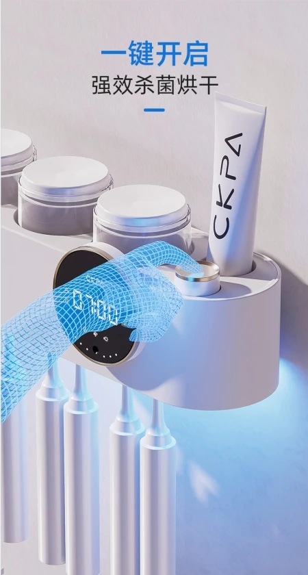 All-in-One USB Charge Automatic Toothbrush Sanitizer Multi-Family Air Dry UV Sterilizer with 3 Cup Brush Holder