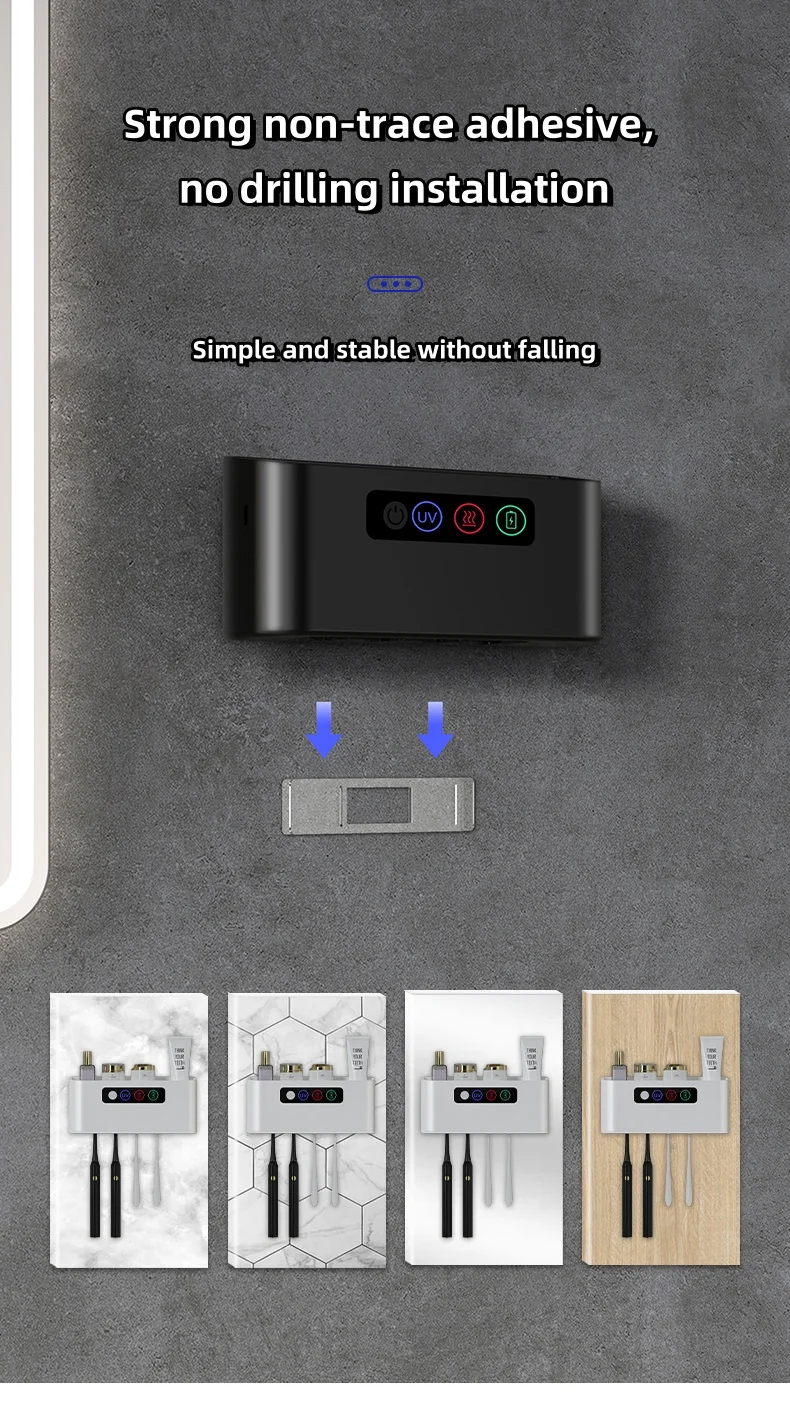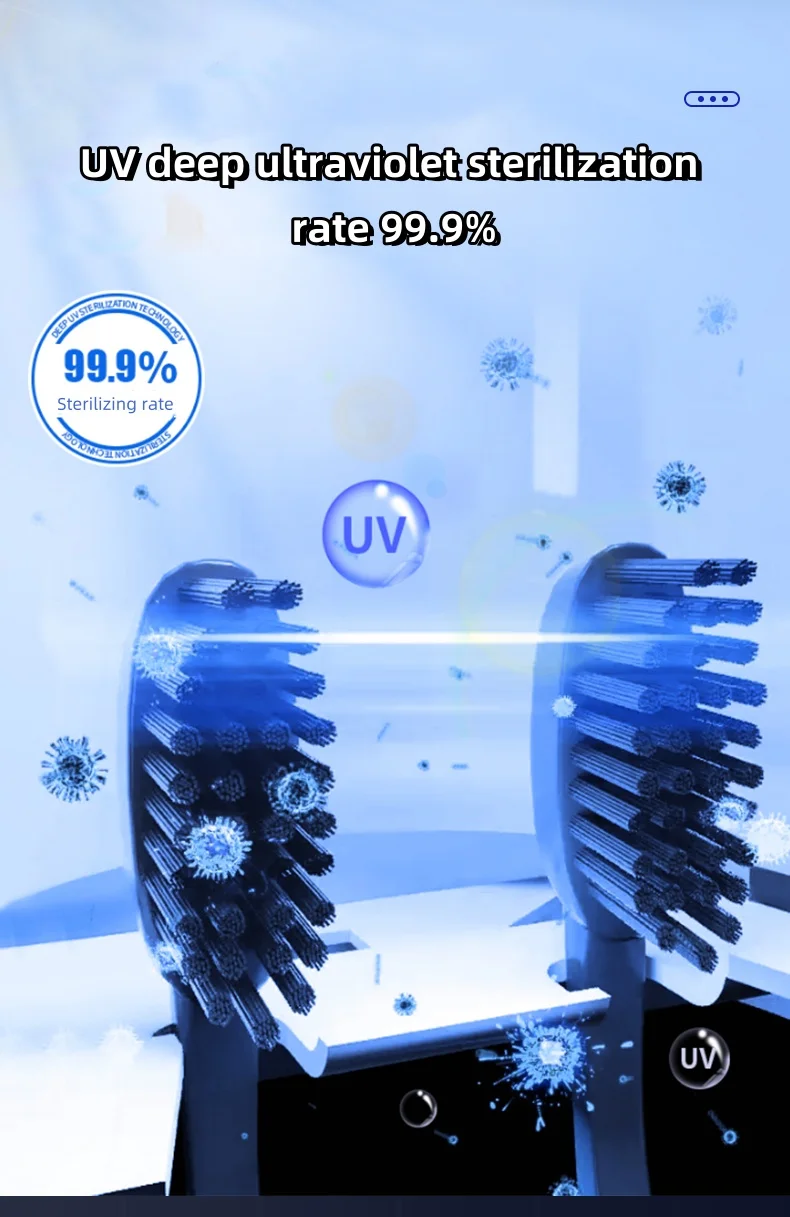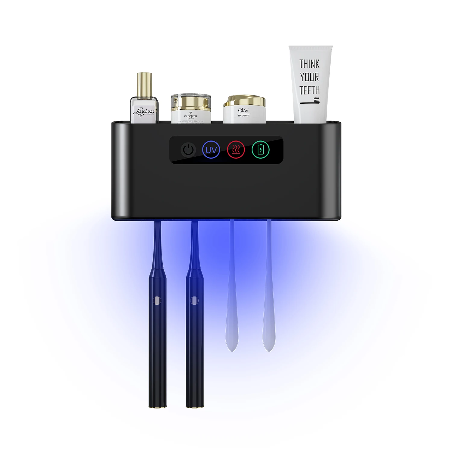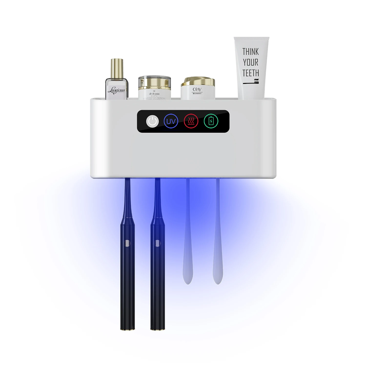 USB Rechargeable Wall-Mounted Family Toothbrush Sanitizer with UV Disinfection Drying & Heating Four-Slot Holder