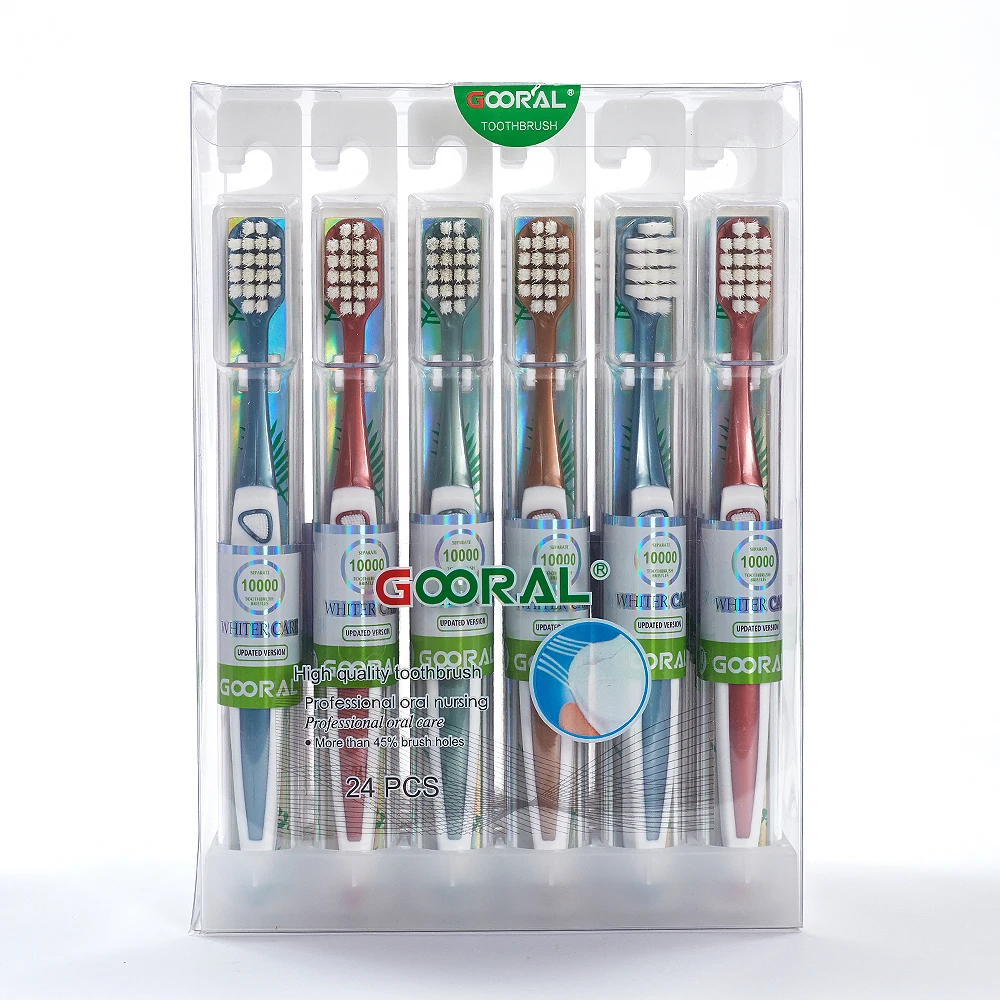 Factory Customized Own Brand 1 Adult Plastic Toothbrush PBT Bristle PP Handle Soft Nylon Biodegradable Disposable Comes PVC Box
