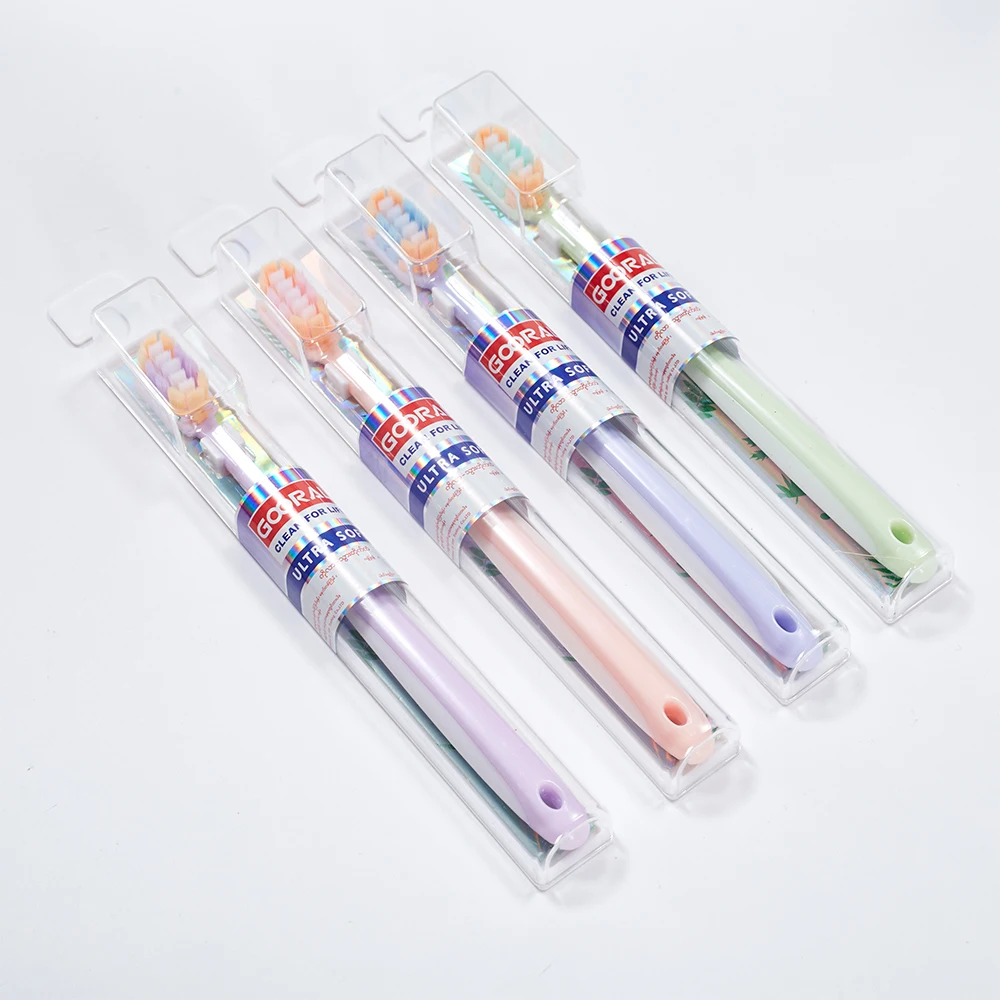 OEM/CUSTOM BIODEGRADABLE DISPOSABLE ADULT TOOTHBRUSH SOFT NYLON BRISTLES with PLASTIC HANDLE HOME LOGO PERFECT for HOME USE