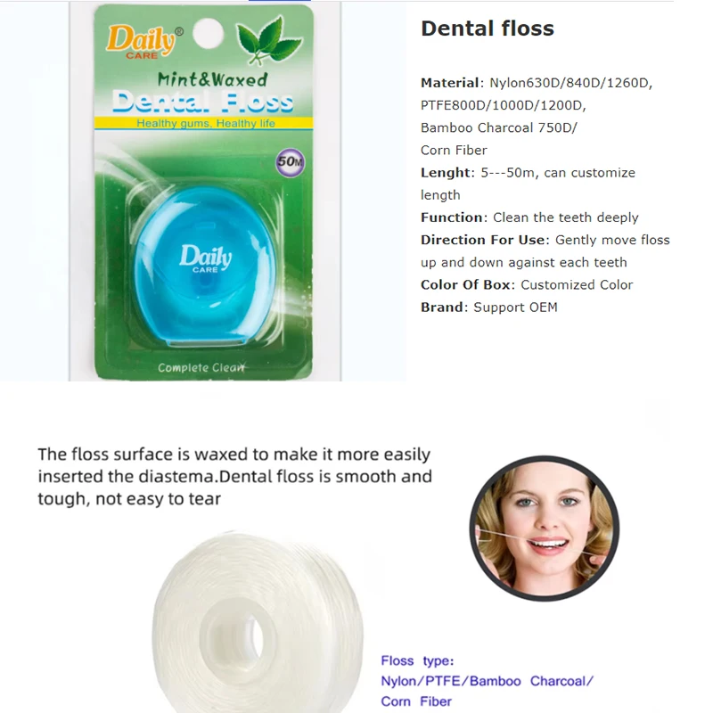New Arrival Daily Care Dental Flossers Super Floss 10m/25m/40m/50m/100m/150m Nylon Tooth Floss for Sale