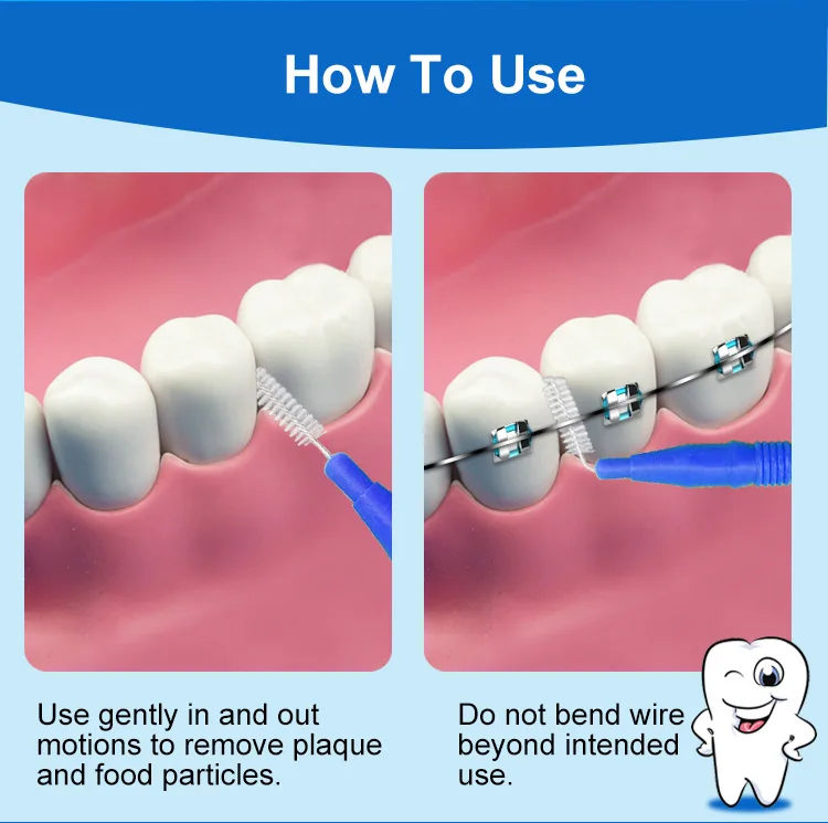High Quality Adult Orthodontic Interdental Brush Daily Care Triple Feature Clean Stainless Steel Wire & Plastic Material