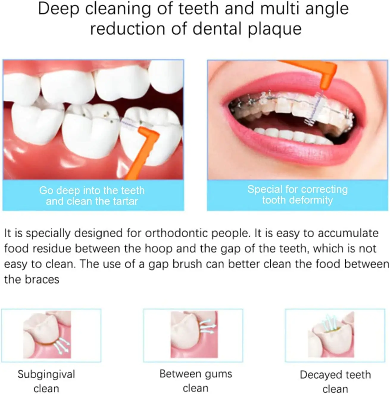 Orthodontic Daily Teeth Care L-Shape Interdental Brush Dental Flossers for Effective Interdental Cleaning
