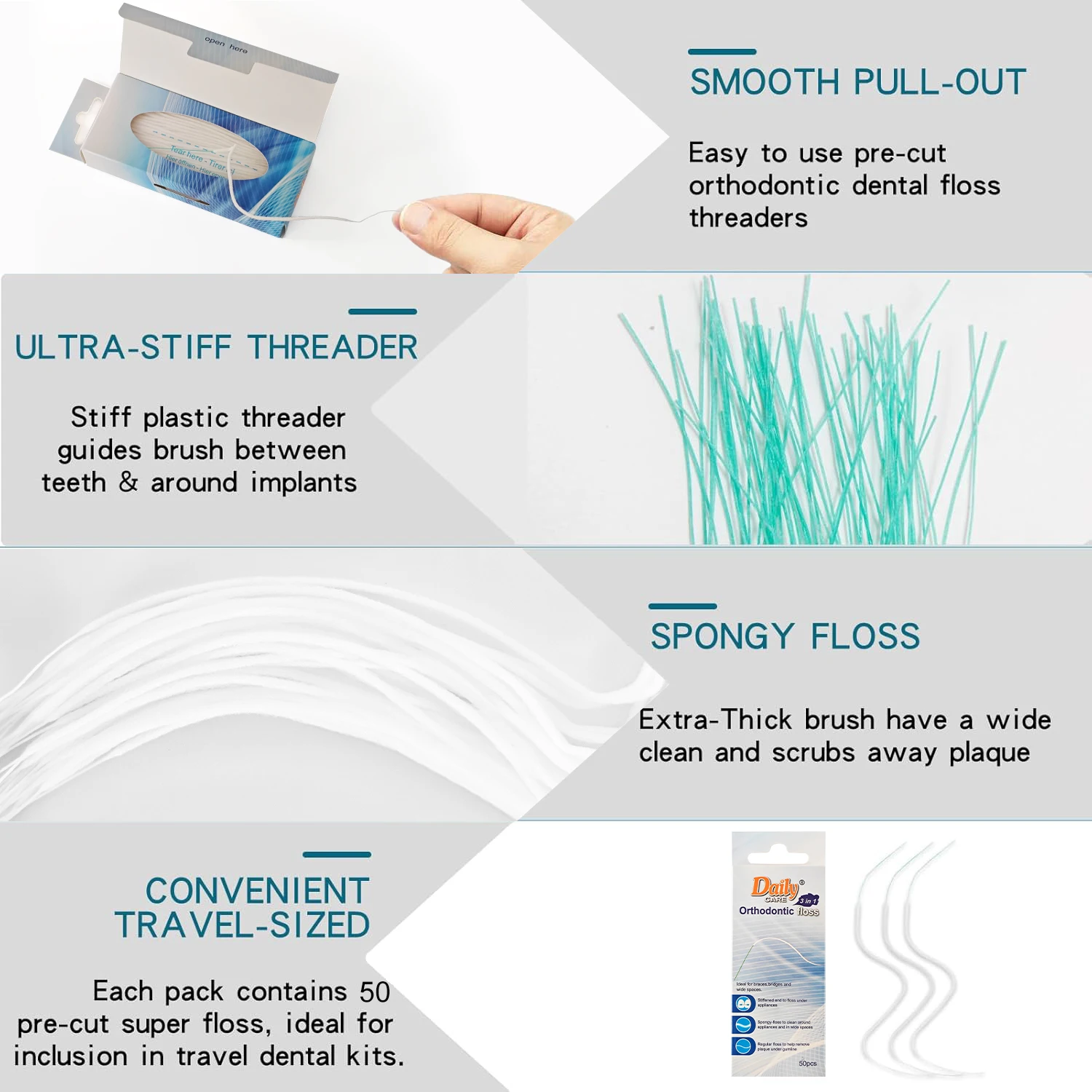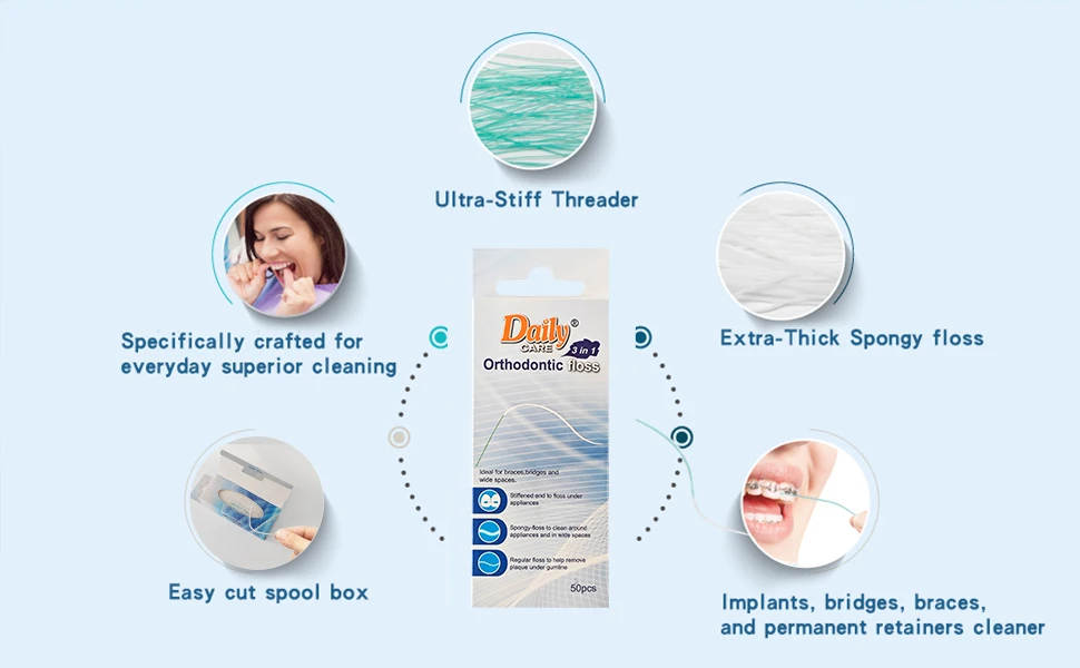 Daily Care Innovative Design Dental 3IN1 Super Bubble Floss with Threader and Floss for Orthodontic Daily Oral Care