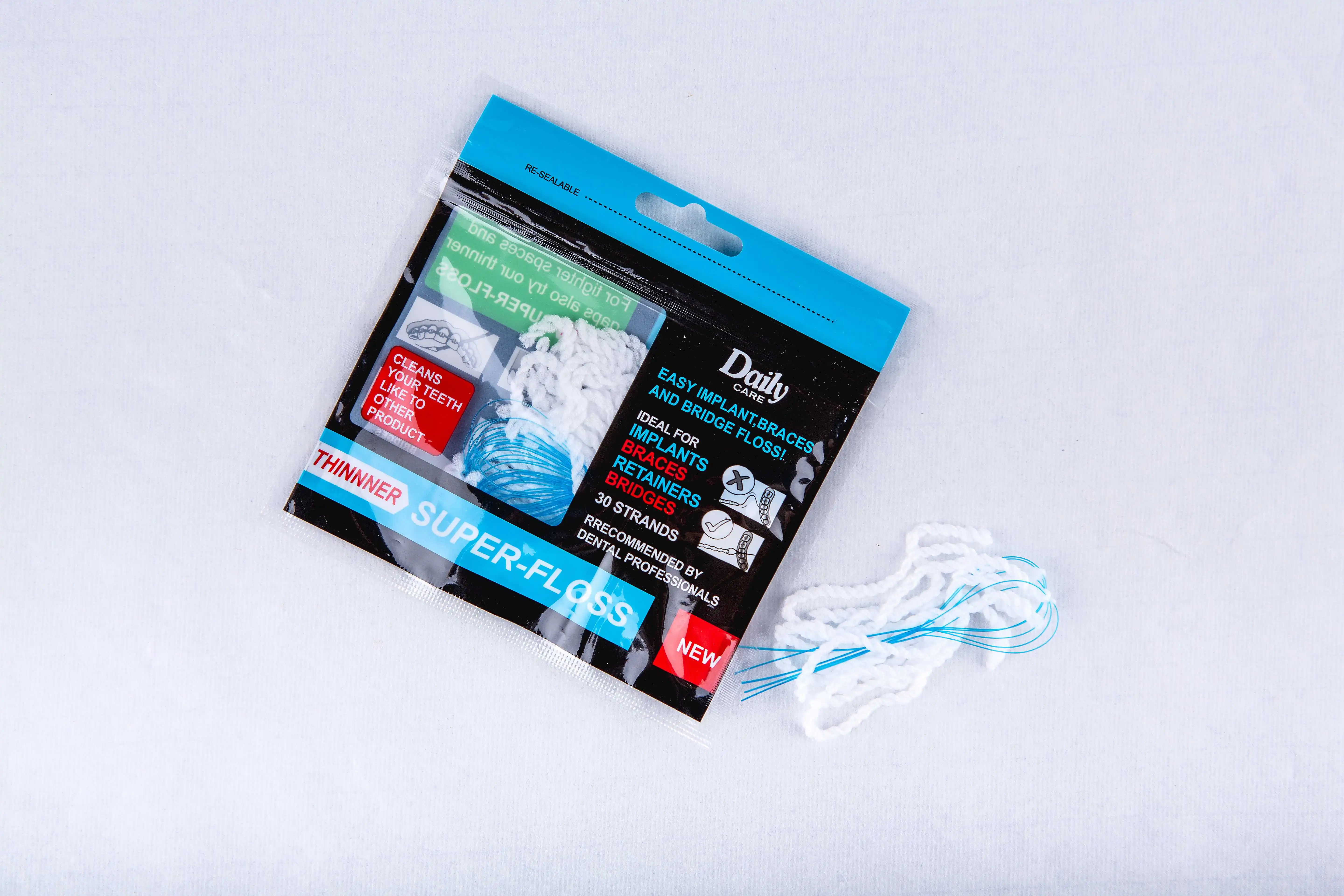Daily Care Super Thick Dental Floss with Threader for Wide Gap Implant Brace Bridge Retainer Cleaning
