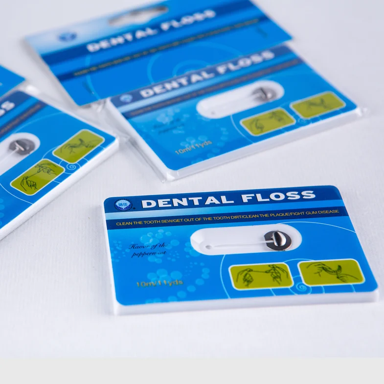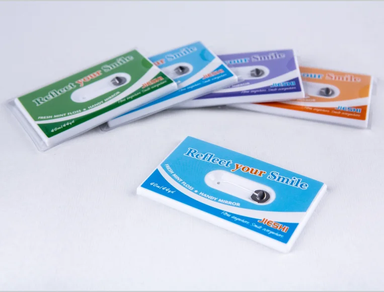 Daily Care FDA CE Approved OEM Accept Portable Card Shape 40M Mint Flavor Waxed 630D Nylon Dental Floss with Mirror Back