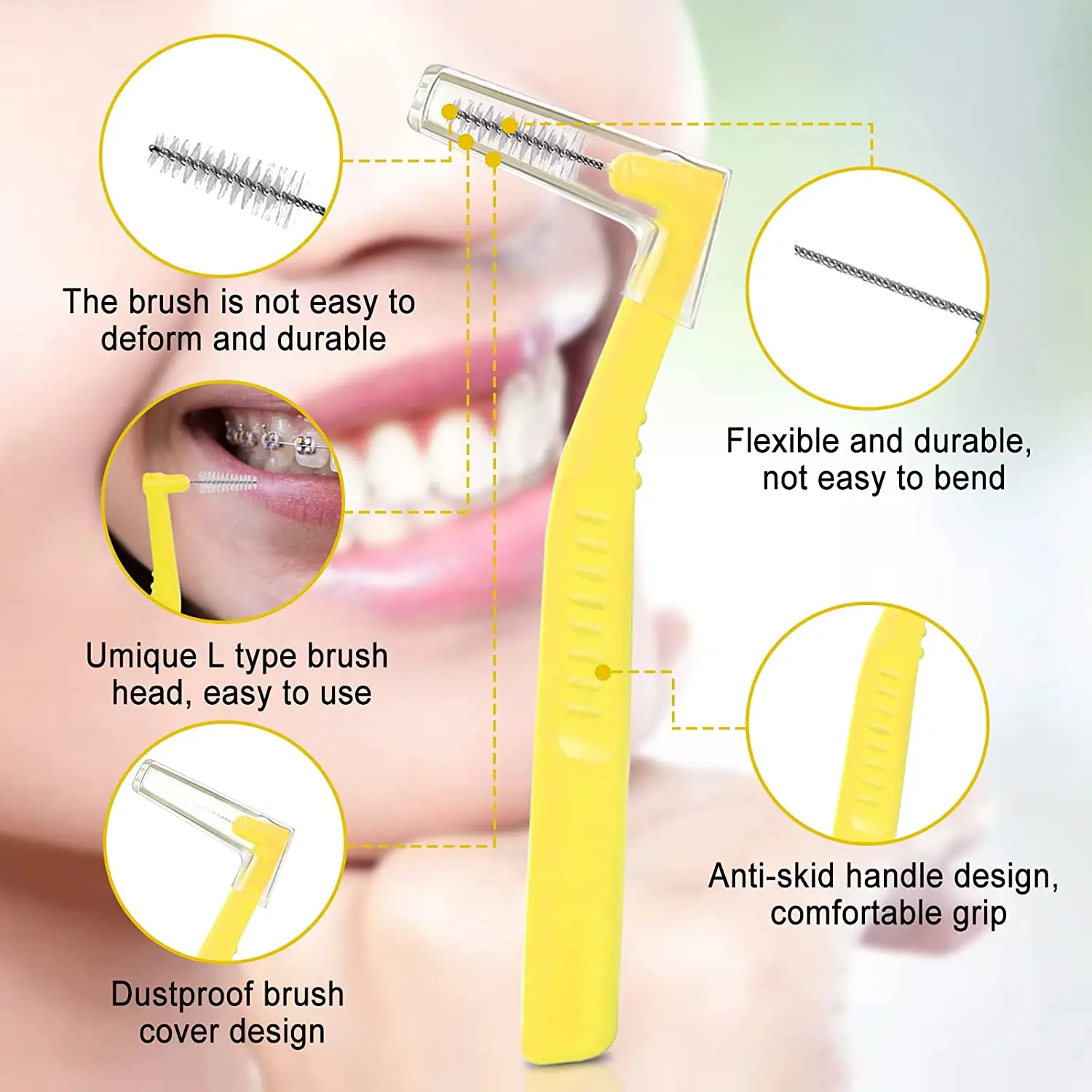Pack of 6 Inter Dental Brush Angle, Angled Dental Brush for Teeth Cleaning, 4 Sizes