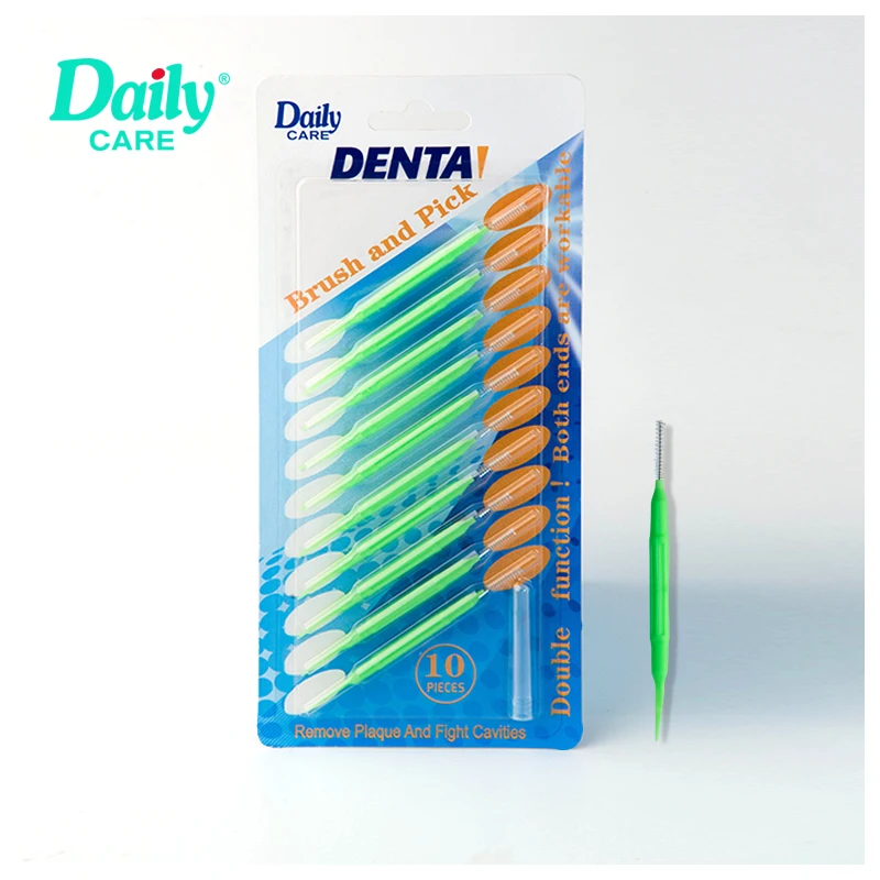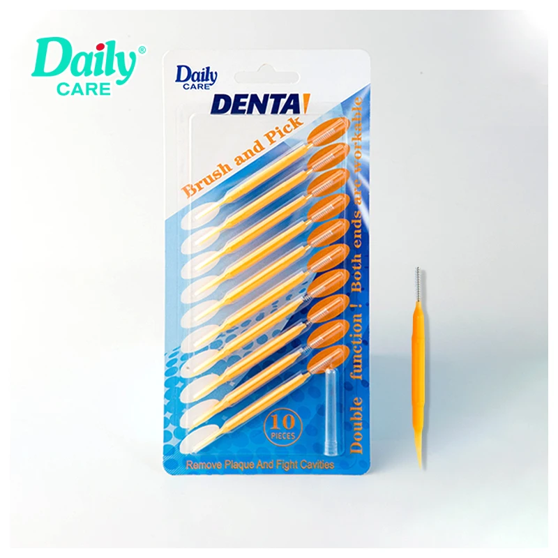 Daily Care Blister Card 10pcs Reusable Plastic Handle Stainless Steel Interdental Brush with Cap