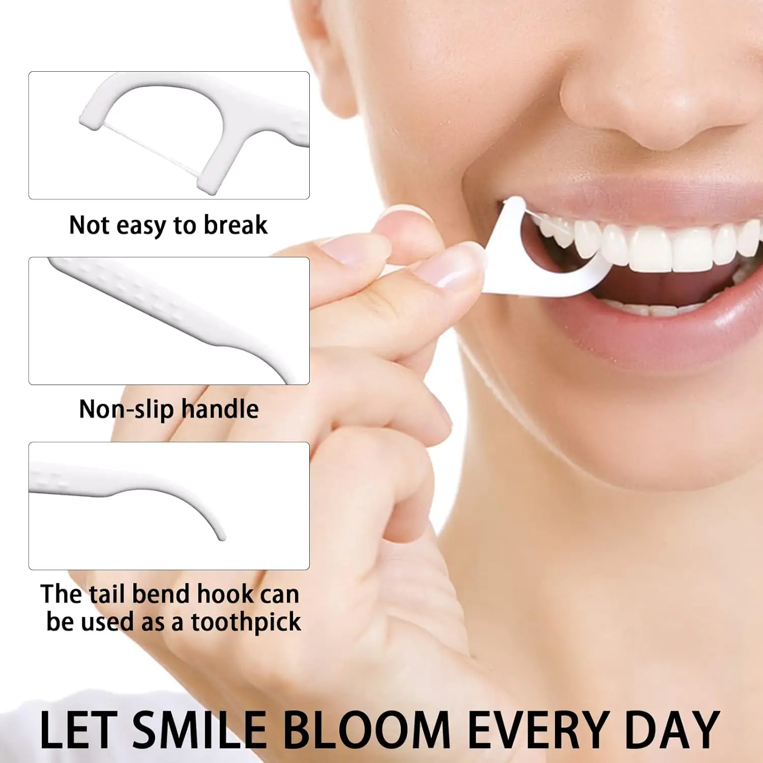 Daily Care Quality PP Box Pack 50pick Anti-slid Portable Dental Flosser Durable 400D UHMWPE Floss with Pick End for Oral Hygiene
