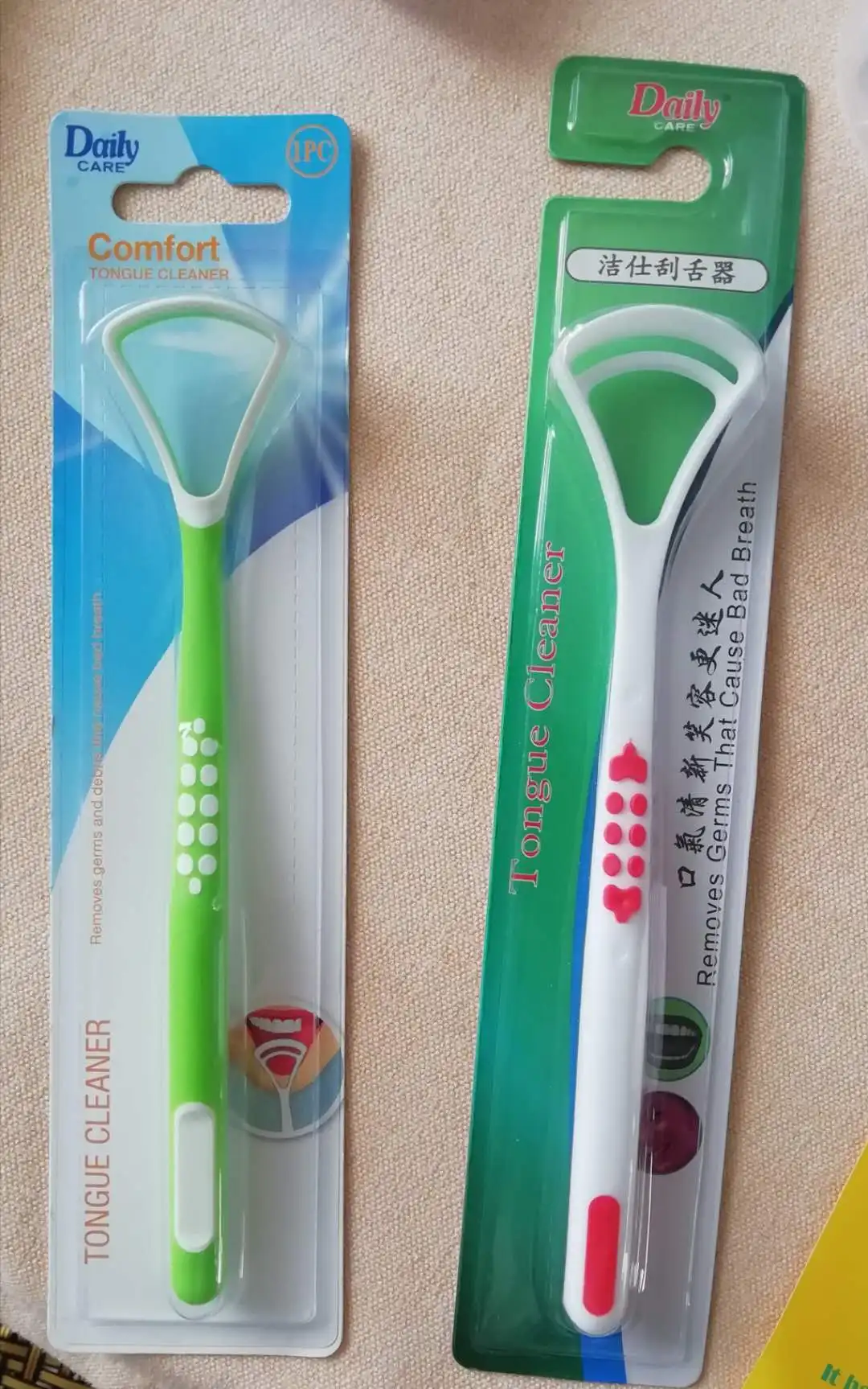 Daily Care Good Price Oral Hygiene Durable Soft Rubber Tongue Scraper Reusable Tongue Cleaner Blister Card Pack