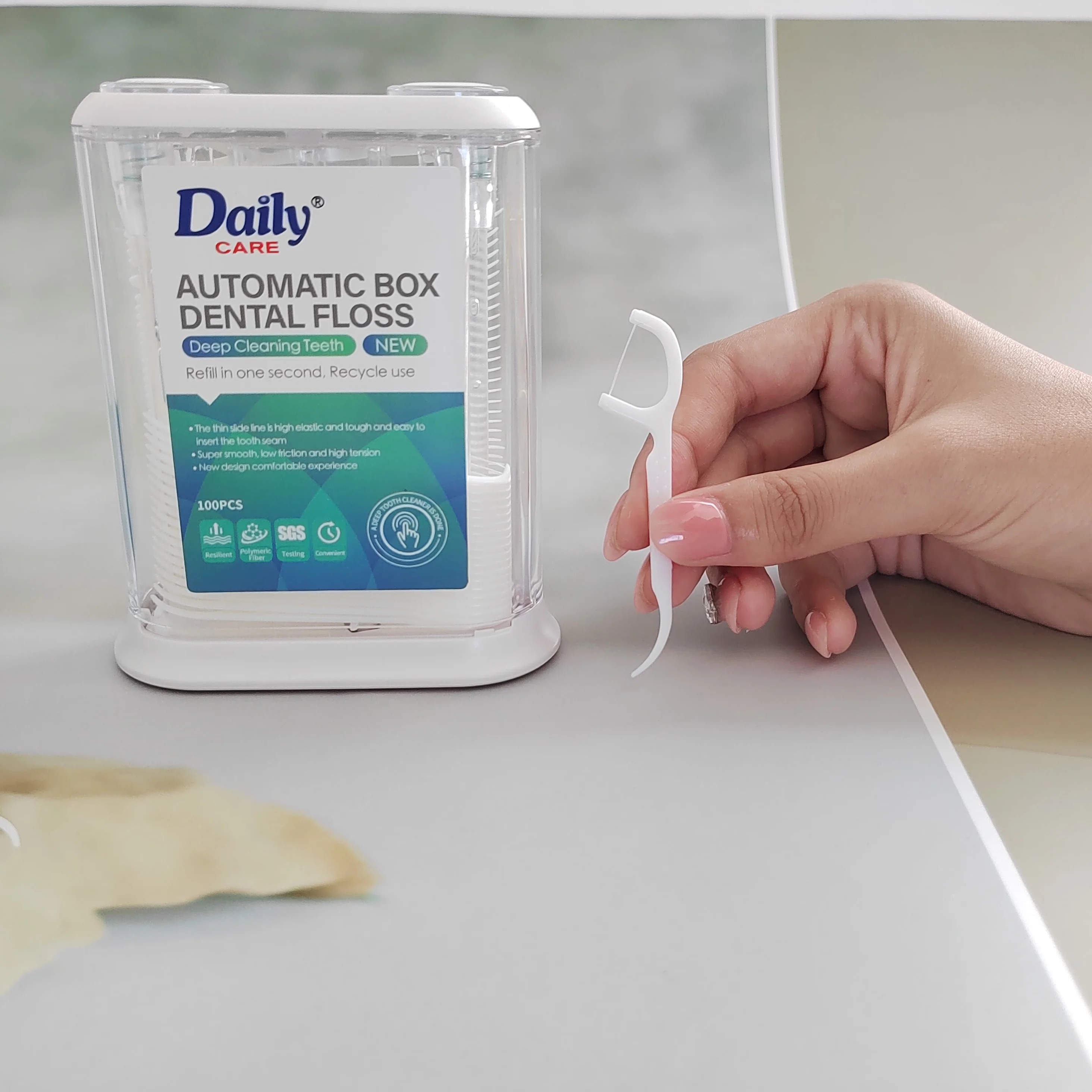 Daily Care Household Floss Pick Dispenser Box Reusable Refill Automatic Dental Flosser Dispenser 100picks