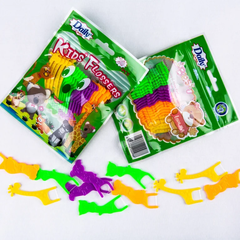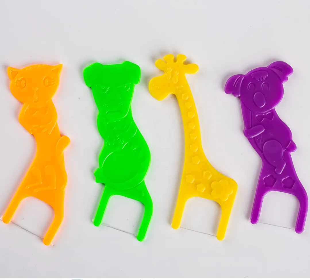 Daily Care CE FDA Approved Easy Grip Fun Animal Shape Handle Kid Interdental Floss Bar Soft Floss Pick for Children 20picks