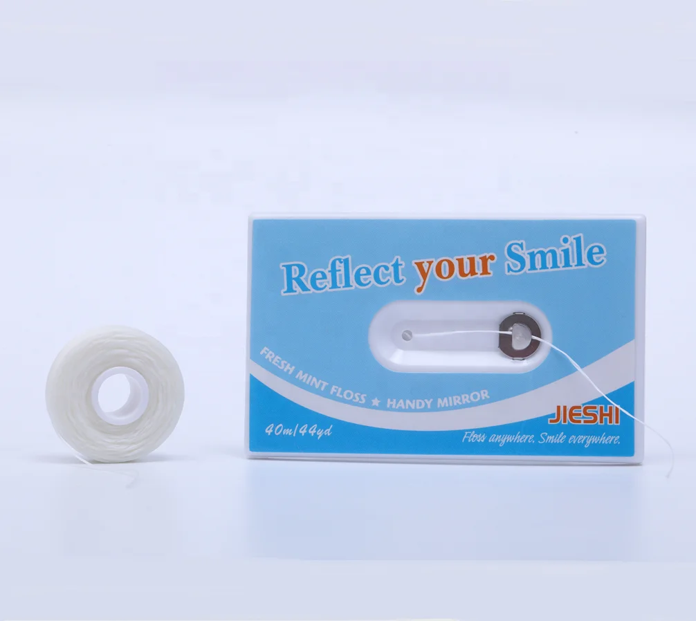 Daily Care Factory Price 10m Credit Card Dental Floss Mirror Back Card Teeth Cleaning Floss Pick 630D Nylon