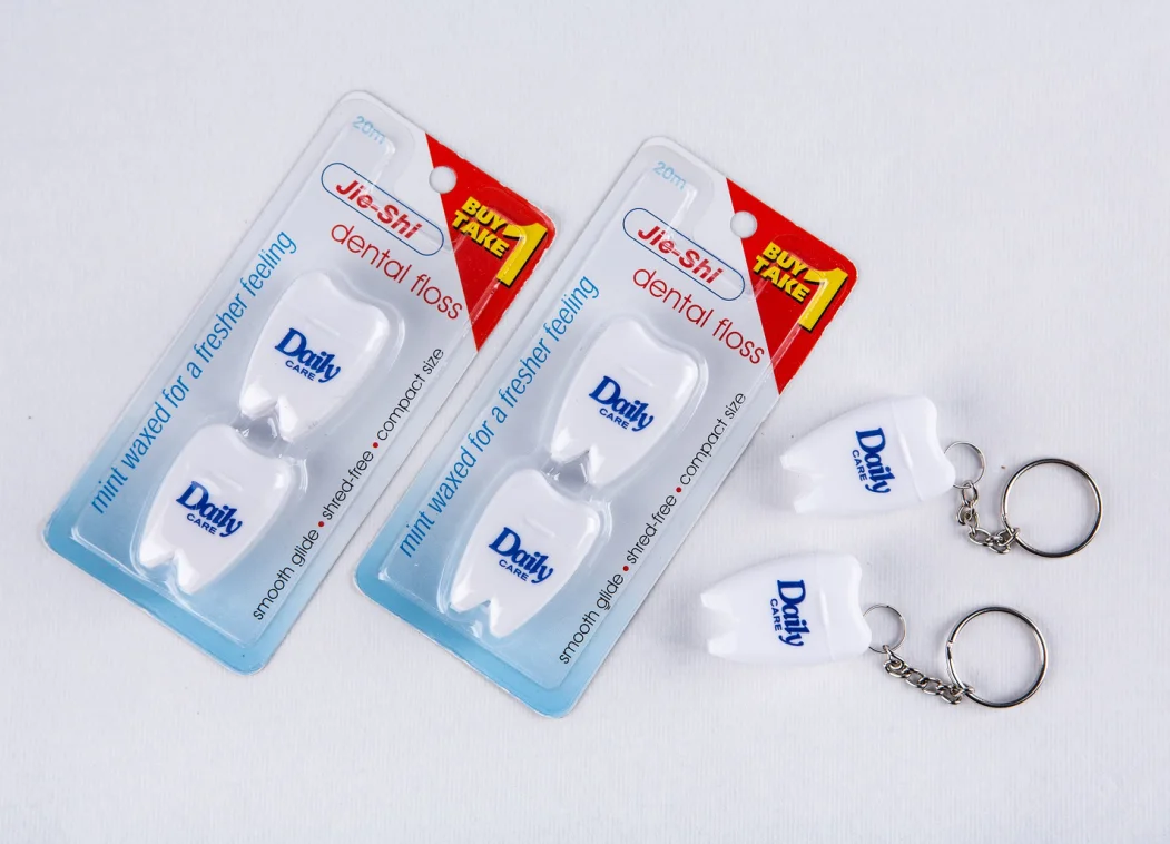 Daily Care Top Selling Customize Logo Twin Pack Baby Tooth Shape 12yard Dental Floss with Keychain Holder