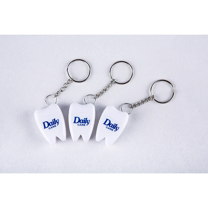 Daily Care Factory Direct Keychain Holder Tooth Shape Dental Floss Pick 10m Clinic Souvenir Gift Floss Custom Logo