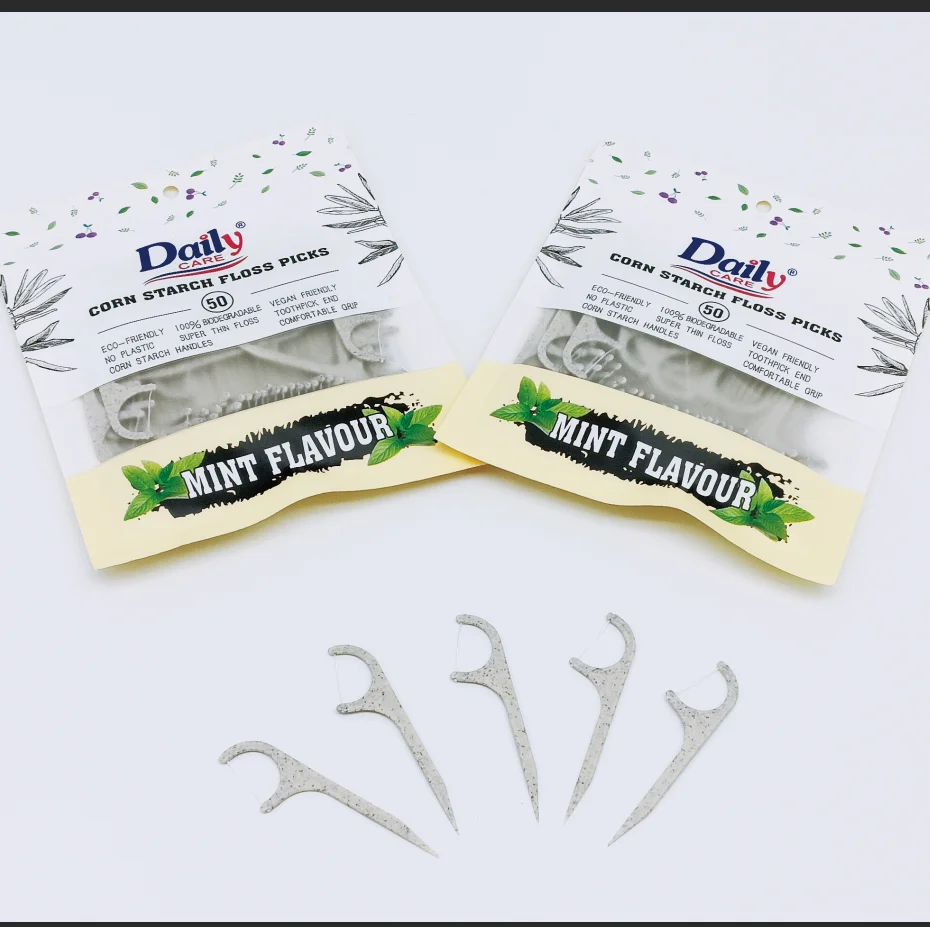 Daily Care Best Selling Vegan Wheat Straw Interdental Floss Bar JS2001M Recycled Wheat Handle Dental Floss Pick