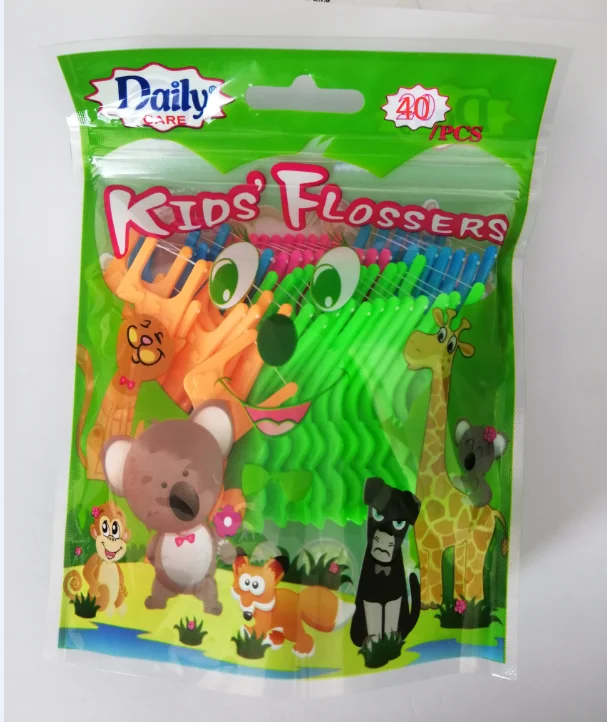 Daily Care Free Sample Professional Recommend Kid's Dental Floss Pick JS2001Q Interdental Flosser for Children Oral Cleaning