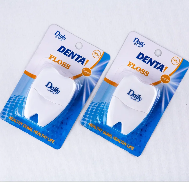 Daily Care Good Price Private Label Interspace Floss Tooth Shape 50m Waxed Nylon Floss for Teeth Gap Cleaning