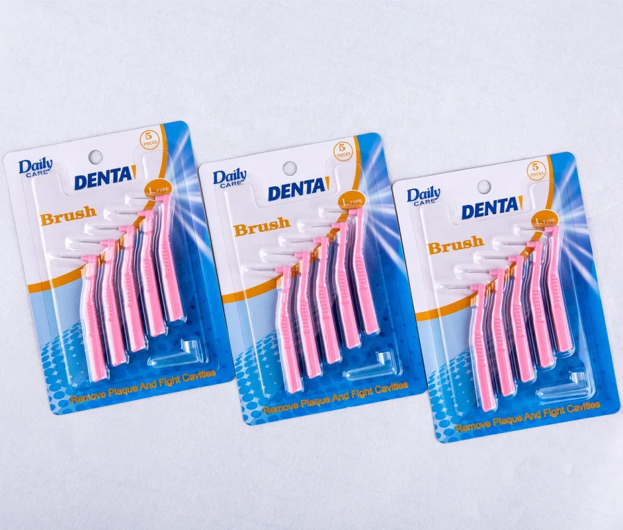 Daily Care Private Label Reusable L Shape PP Handle Interdental Brushes Durable Dupont Bristle Interspace Toothbrush