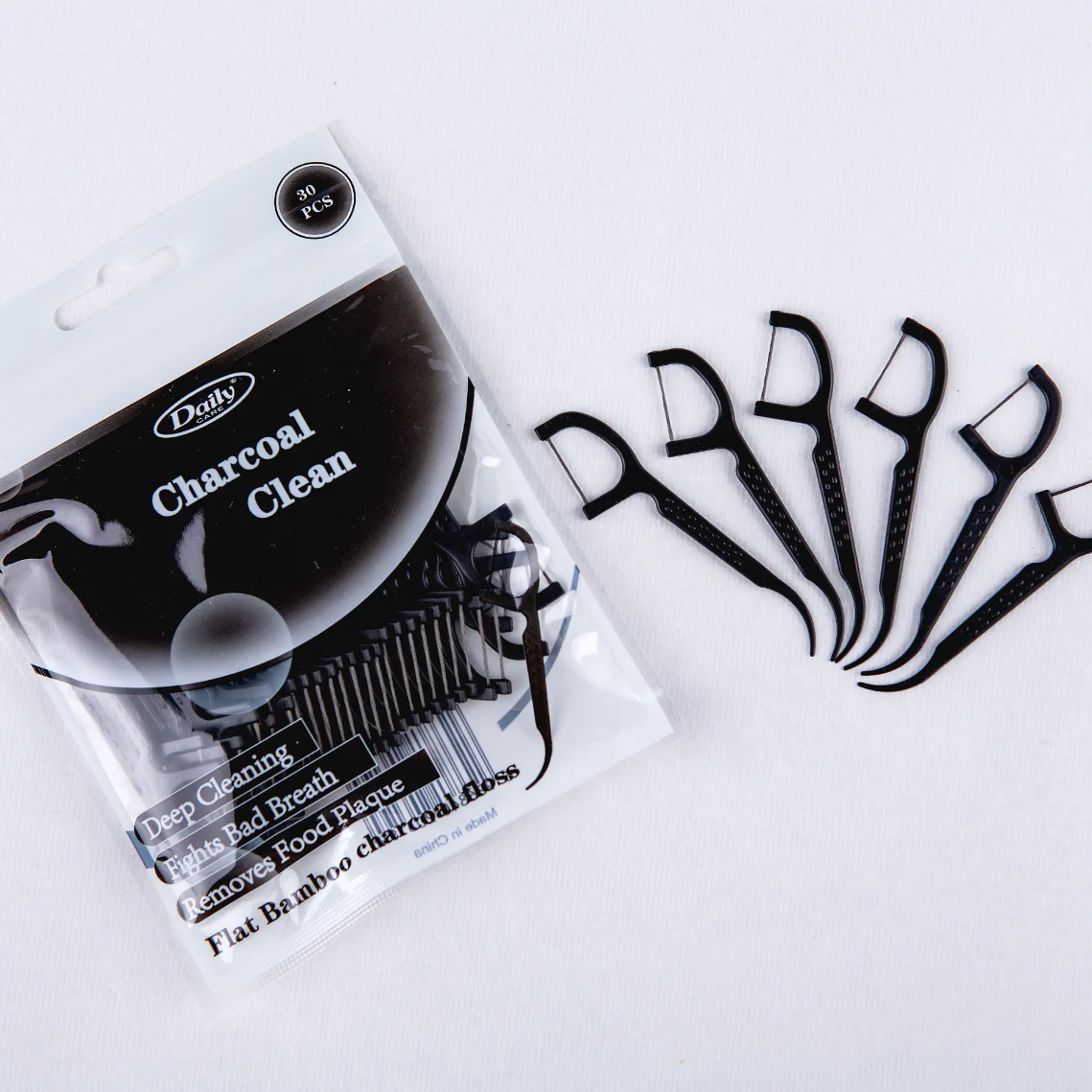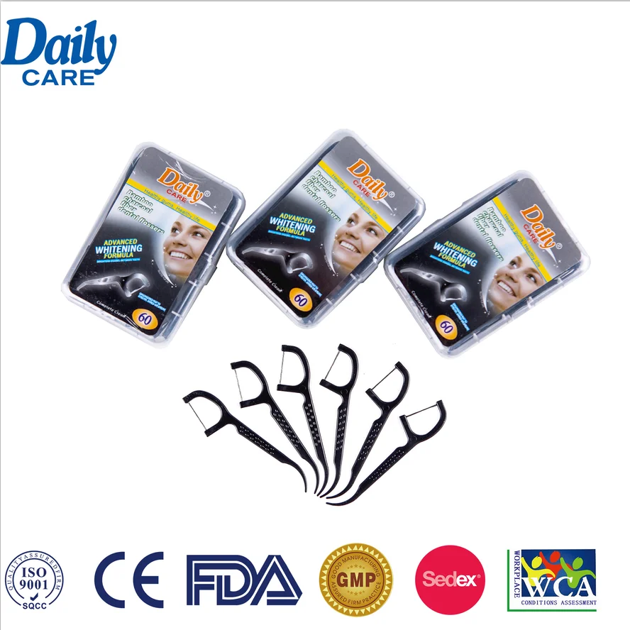 Daily Care ISO GMP BSCI Approved Factory Price Bamboo Dental Floss Pick Two Uses Waxed Smooth Dental Floss Bar Eco-friendly