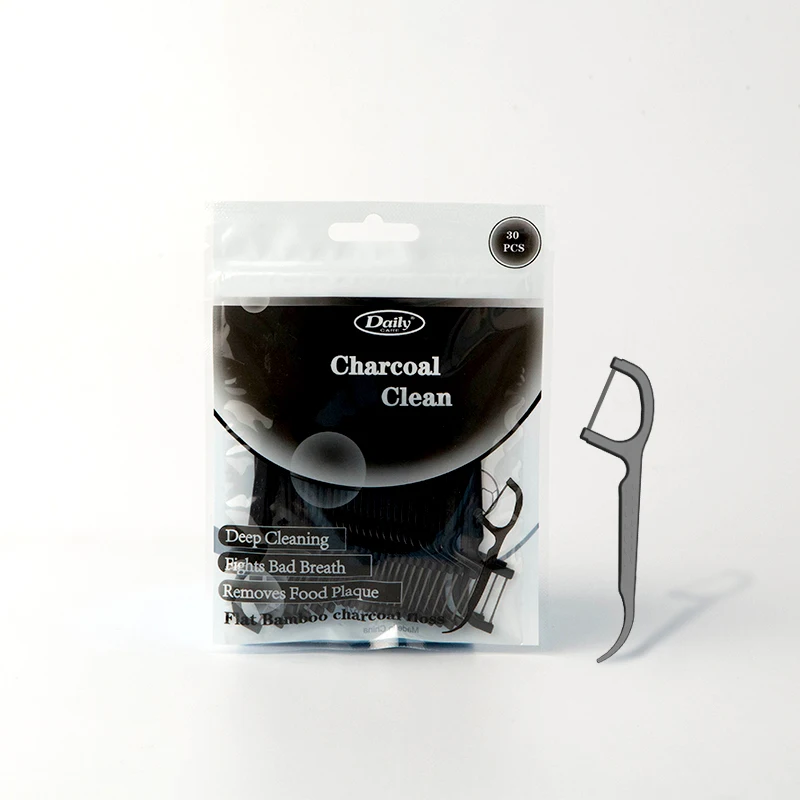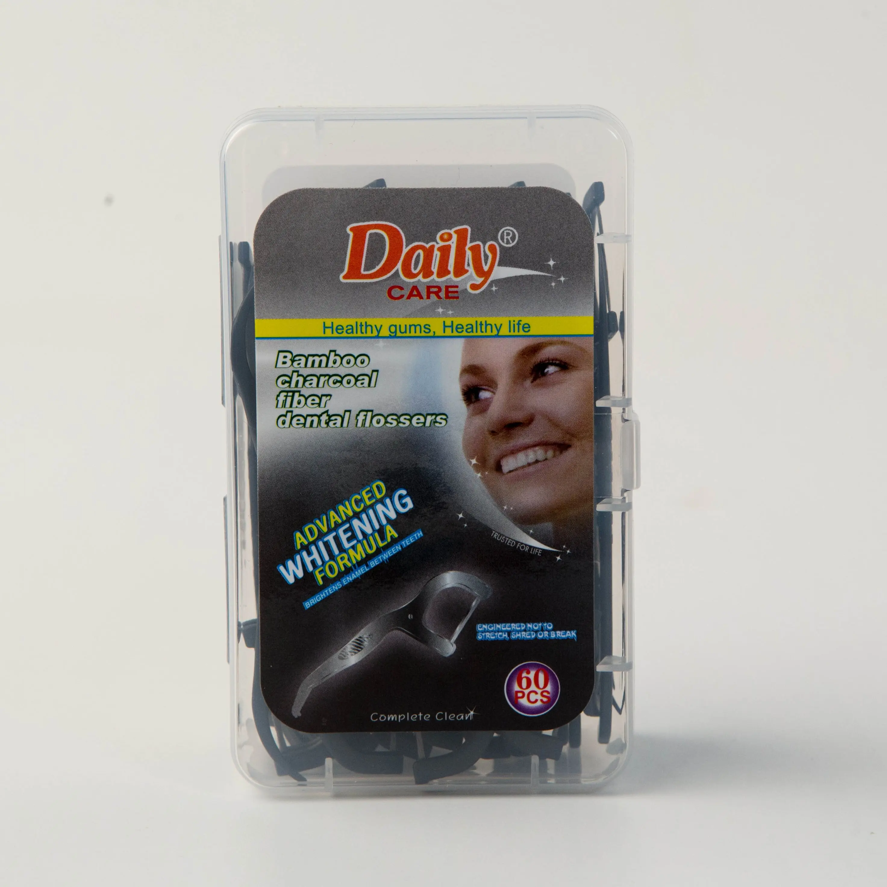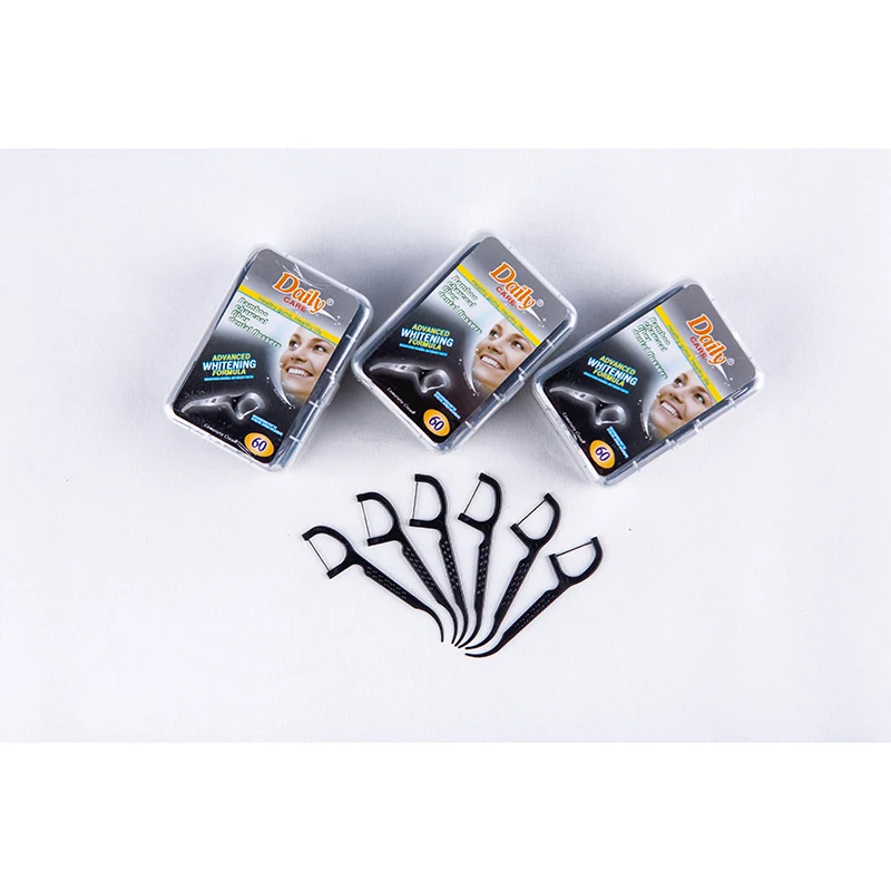 Daily Care Zero Waste Organic Bamboo Charcoal Dental Flosser ST2001B Vegan Bamboo Minty Flavor Wholesale Customize Dental Picks