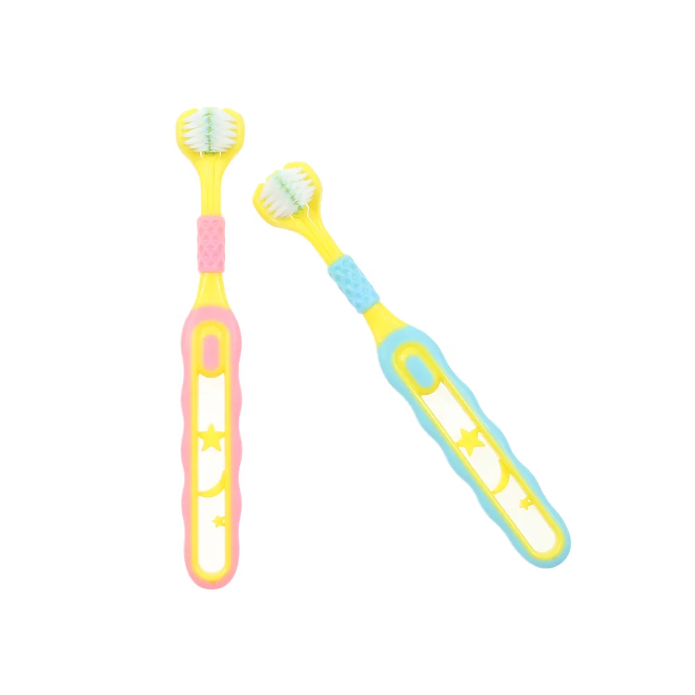 Teeth Whitening Anti slip Plastic Kids 3 Sided Toothbrush Everyday Use Children Cleaning Toothbrush