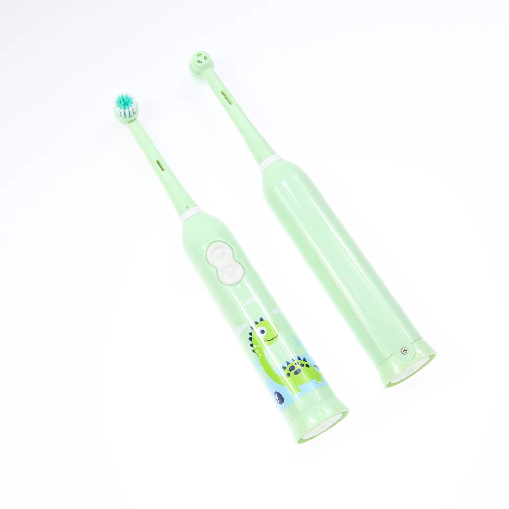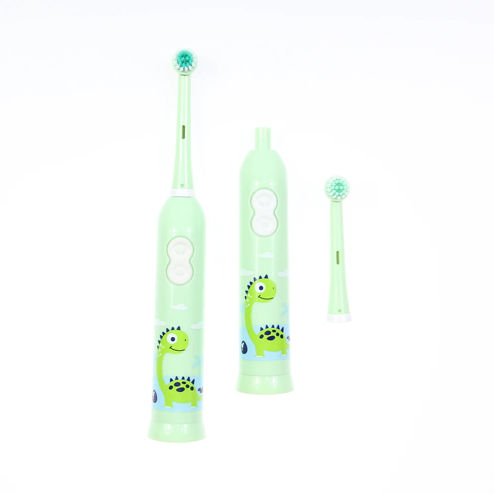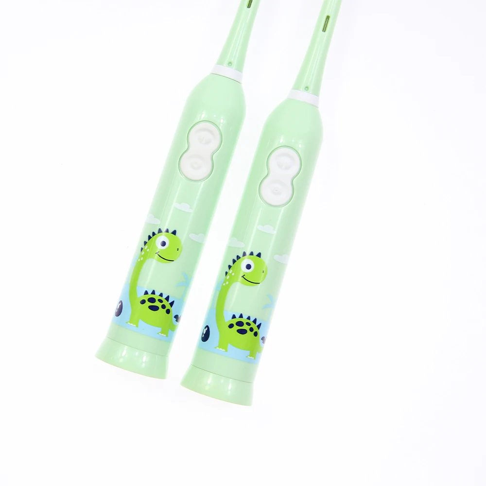 Hot Selling Kids Small Round Head Electric Toothbrush Battery Powered Cartoon Dinosaur Novelty Green Electronic Brush