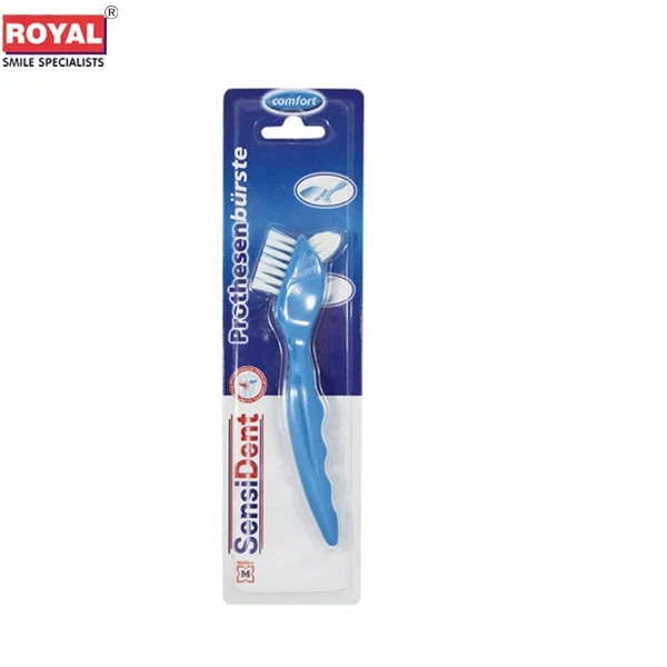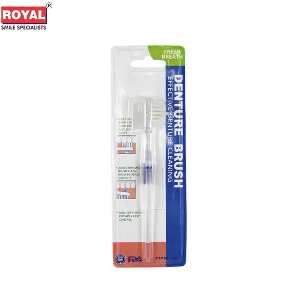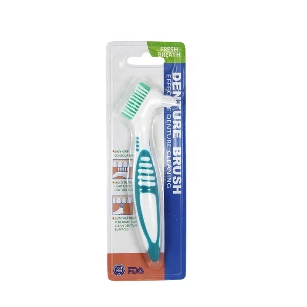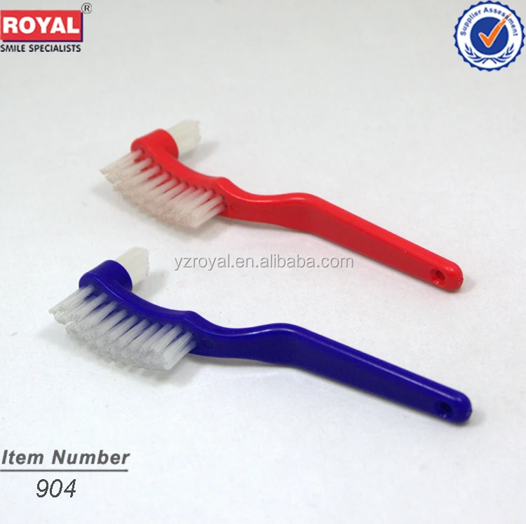 Personal Care Hygiene Denture Brush with Medium Nylon Bristles and Plastic Handle for Home Use
