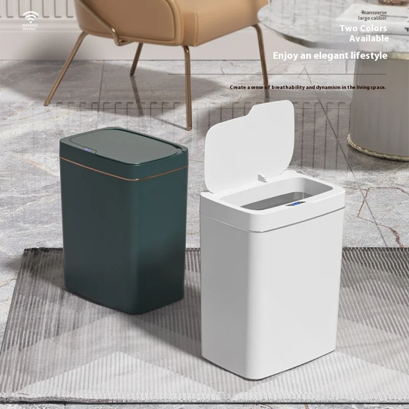 Wholesale Large Capacity Automatic Induction Lid Trash Can Intelligent Home Kitchen Bedroom Living Room Garbage Bin Plastic