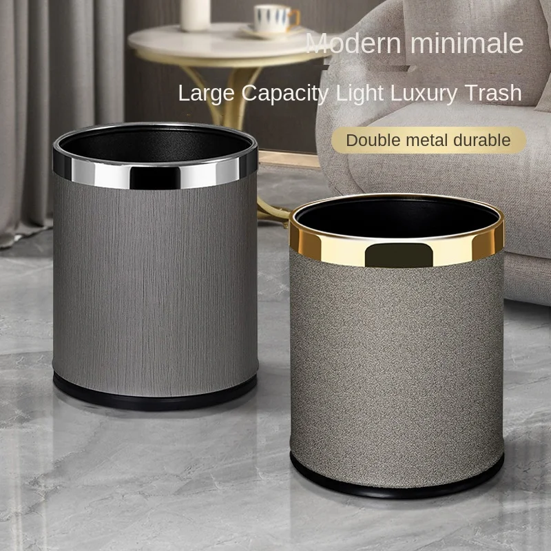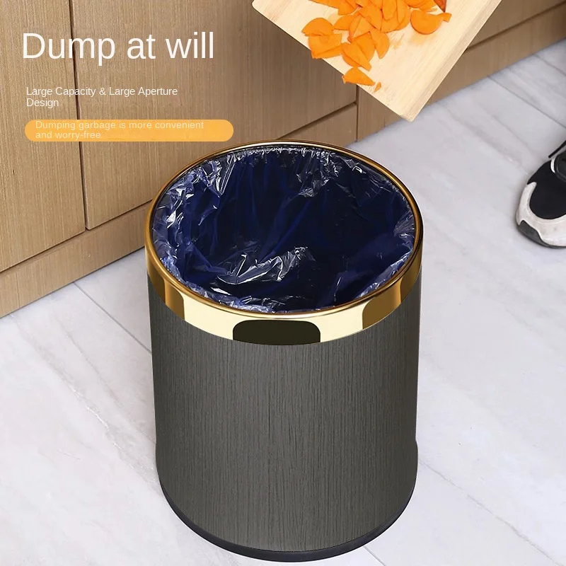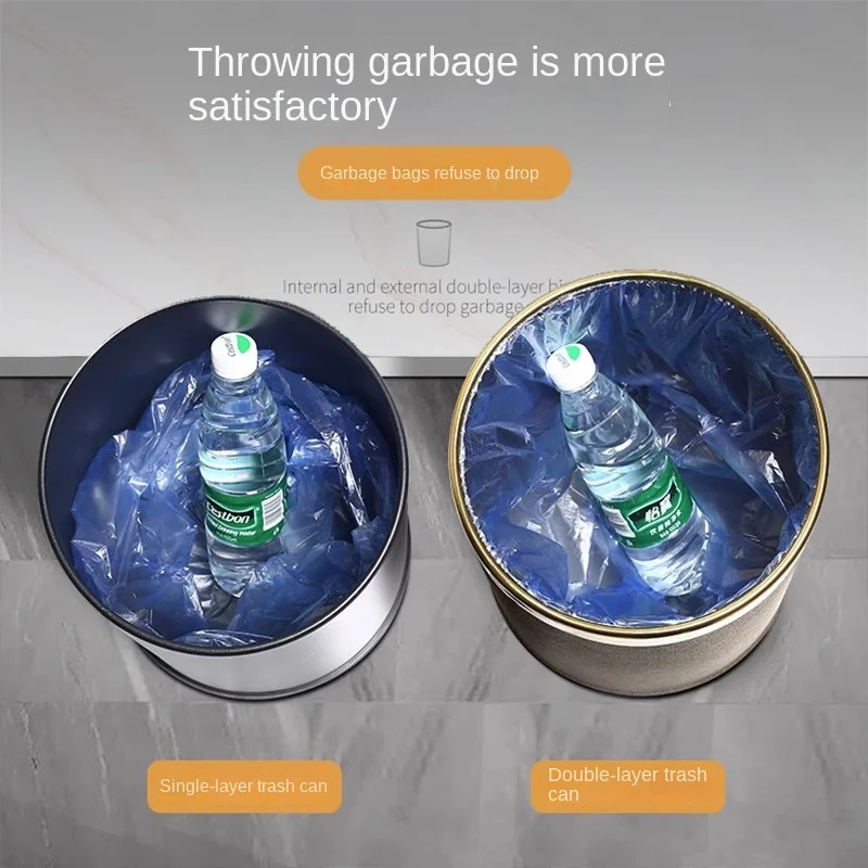 Large 14L Double Layer Stainless Steel Trash Bin Light Luxury Hotel Household Kitchen Living Room for High Capacity Waste