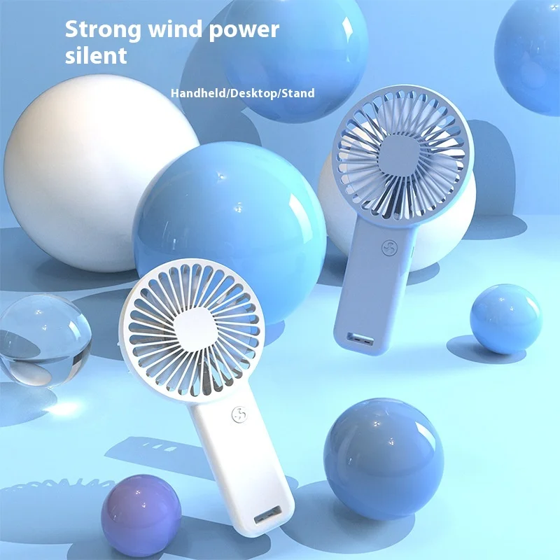 2026 USB Charging Handheld Fan Portable Mini Dormitory Desktop Silent Fan Logo Three Wind Speed Foldable Table Household Use