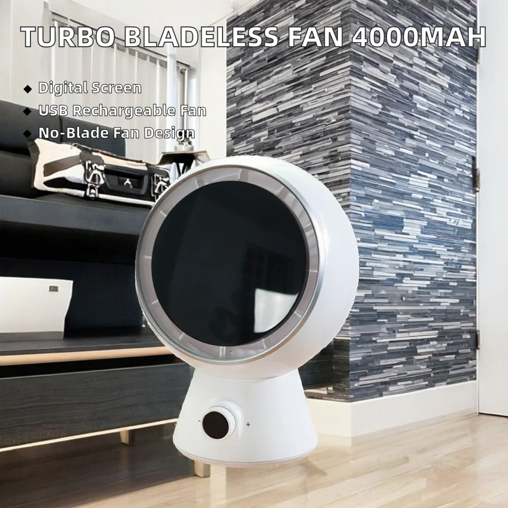 Bladeless Turbo Rechargeable USB Desktop Auto Oscillating Fan 4000mAh Adjustable Digital Display Manual for Household