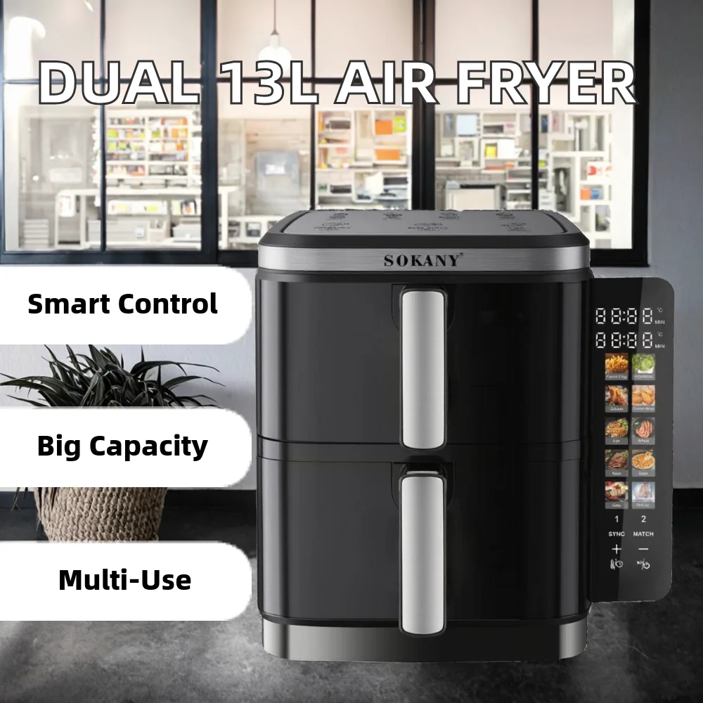 2800W Smart Oil-Free Double Stacked Air Fryer for Large Families 13L+6.5L Dual Digital Air Fryer Double Drawer for Household Use
