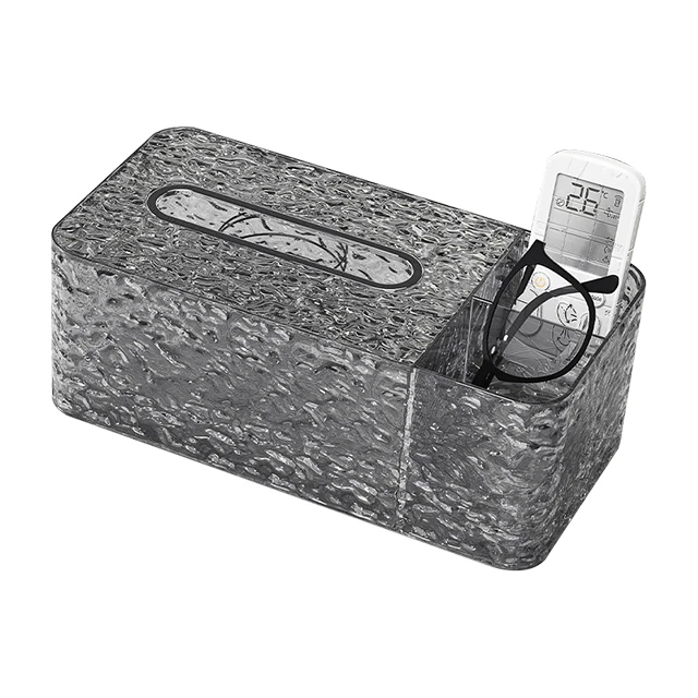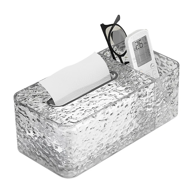 Factory Directly Sale Customized New Fashion Water Wavy Tissue Storage Box Transparent PET and ABS Tissue Box