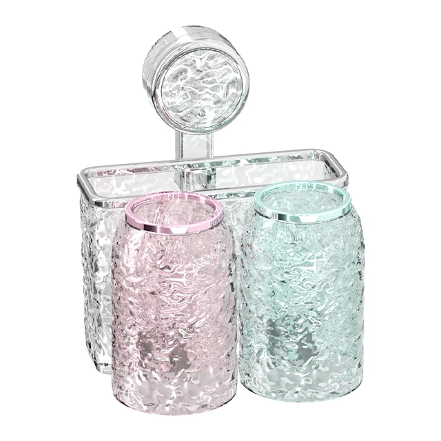Modern Luxury Round Plastic Toothbrush Double Cup for Home Bathroom Storage for Hotels Boxed