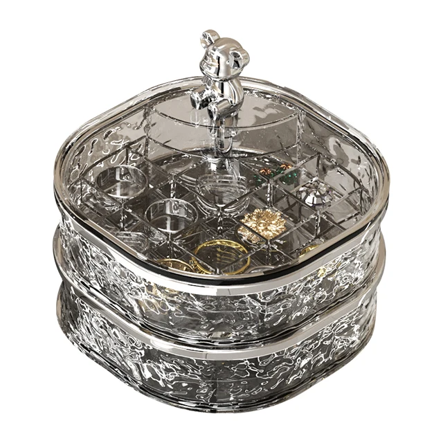 Rotatable Plastic Double-layer Cosmetic Storage Box Modern Design Case Makeup Jewelry Organization Table