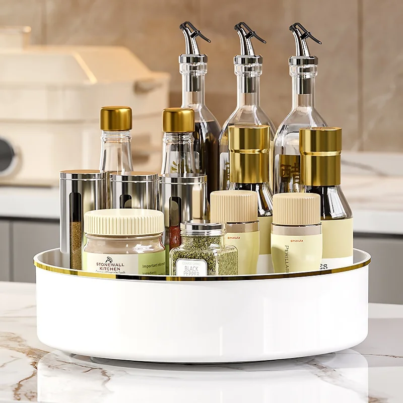 Rotating Luxury Fruit Plate Storage Rack Home Kitchen Desktop Cosmetics Storage Condiments Access Pet Plastic Spices Rack