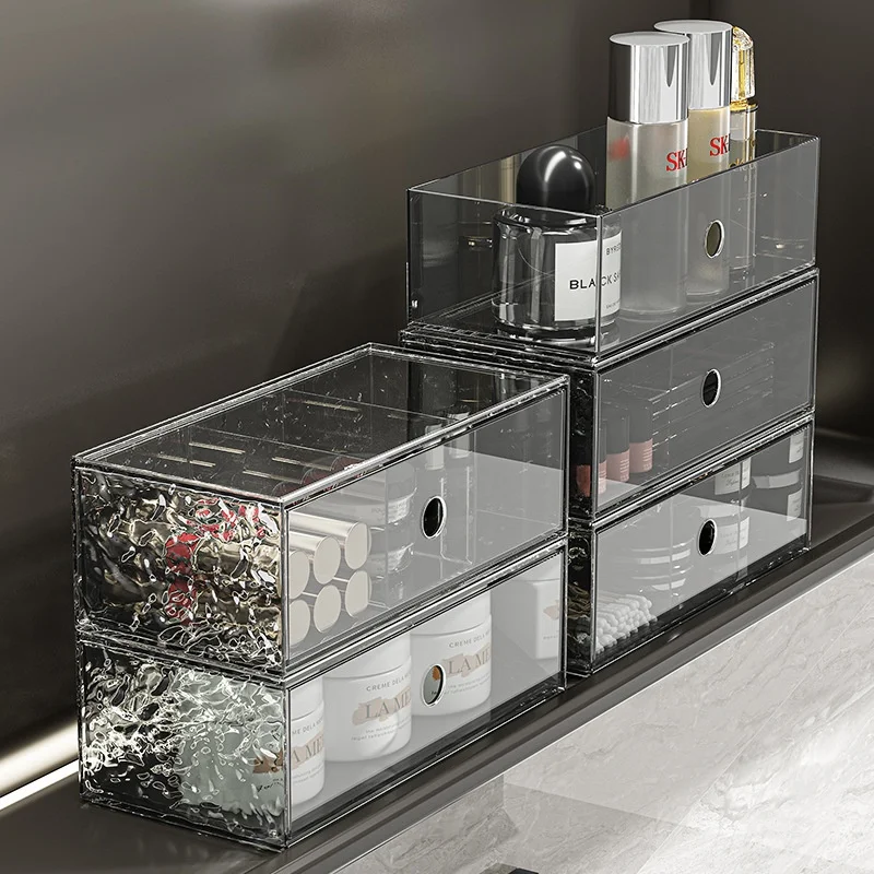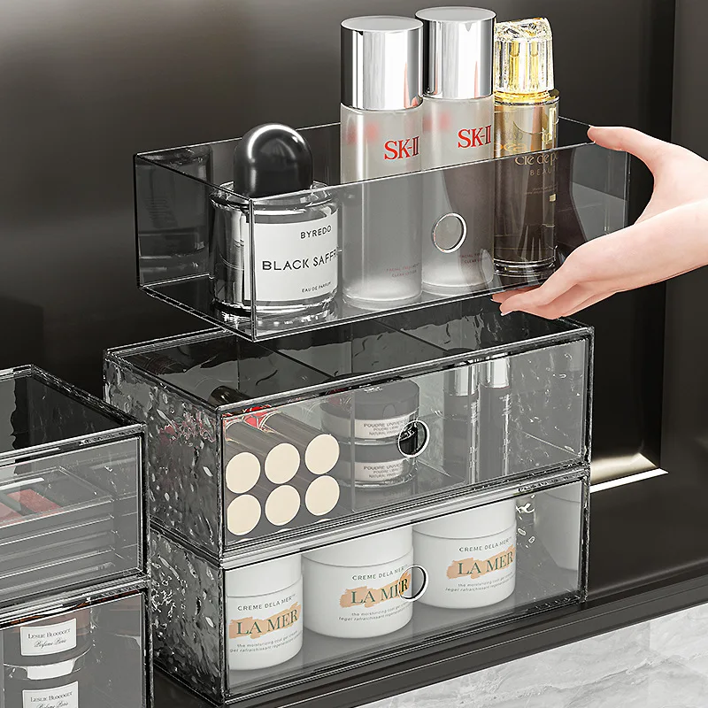 Home High-End Modern Design Bathroom Mirror Cabinet Plastic Cosmetic Storage Box Drawer-Style Lipstick Organizer