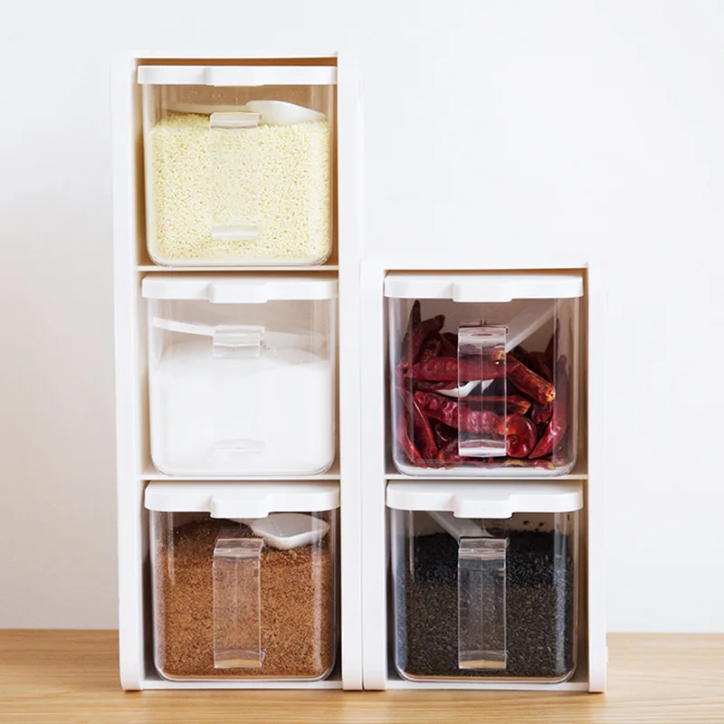 Creative Plastic Seasoning Box Set Kitchen Supplies Spice Rack for Salt Sugar MSG Other Seasoning Jars