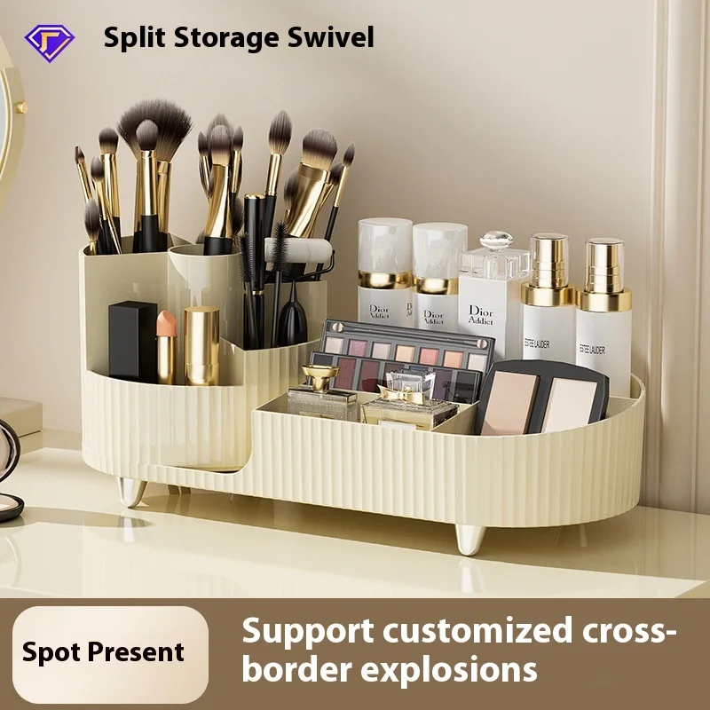 High-End Cosmetics Storage Box Large Desktop Rotating Pen Holder Makeup Brushes Lipsticks Powder Puffs Made Plastic