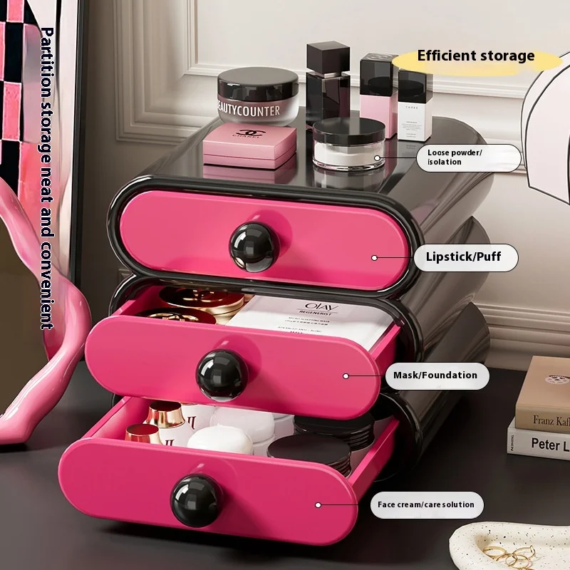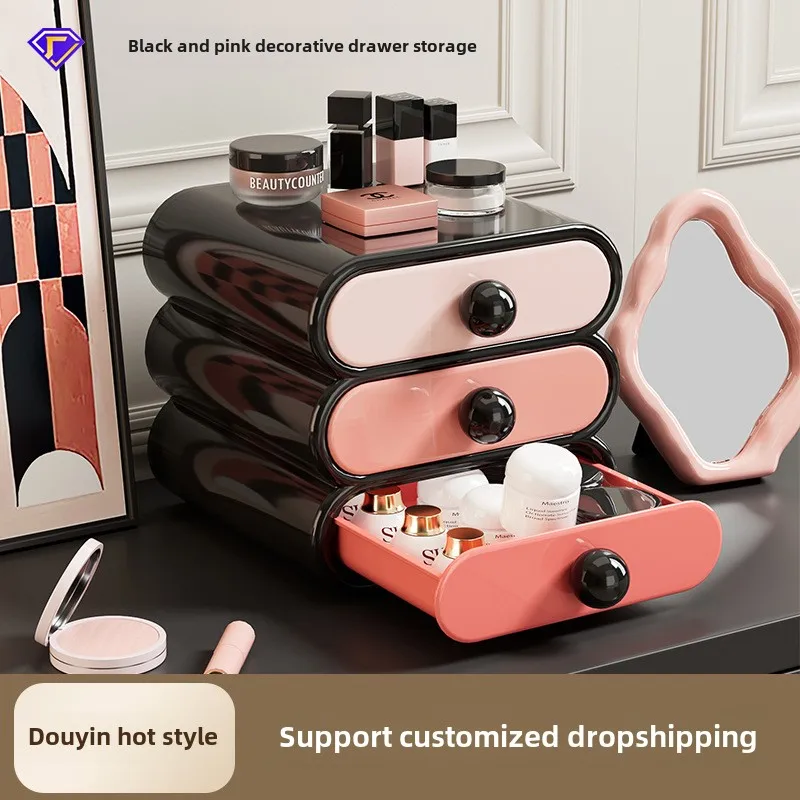 Modern Design Home Bedroom Desktop Storage Box Drawer-Type Cosmetics Rack High-End Aluminum & Plastic (PP)