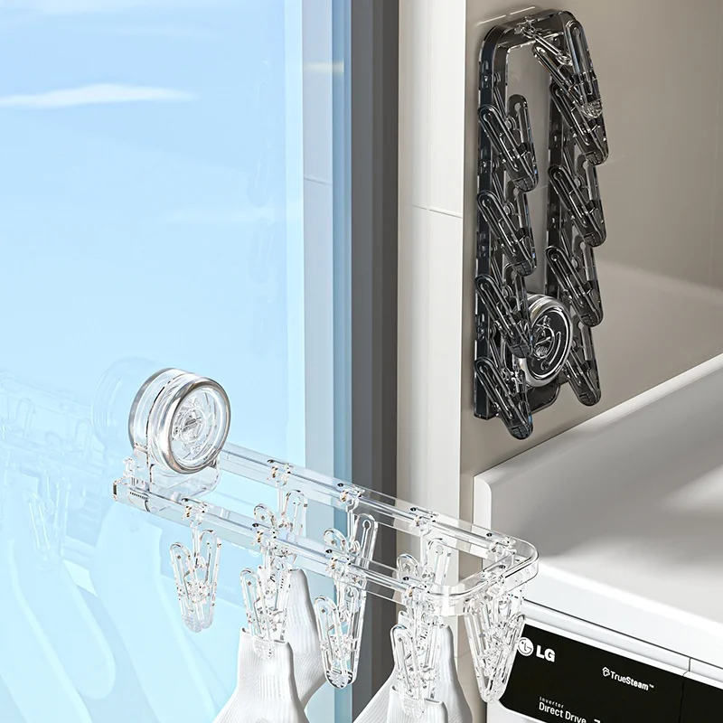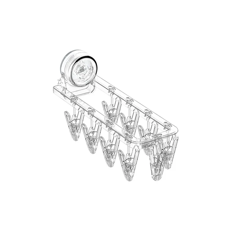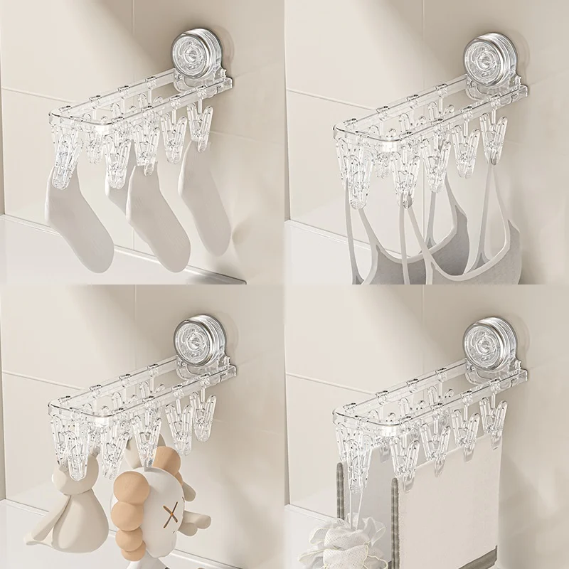Multifunctional Plastic Suction Cup Clothes Hanger Foldable No-Drill Sock Clip Drying Rack Bathroom Balcony Household Clothes
