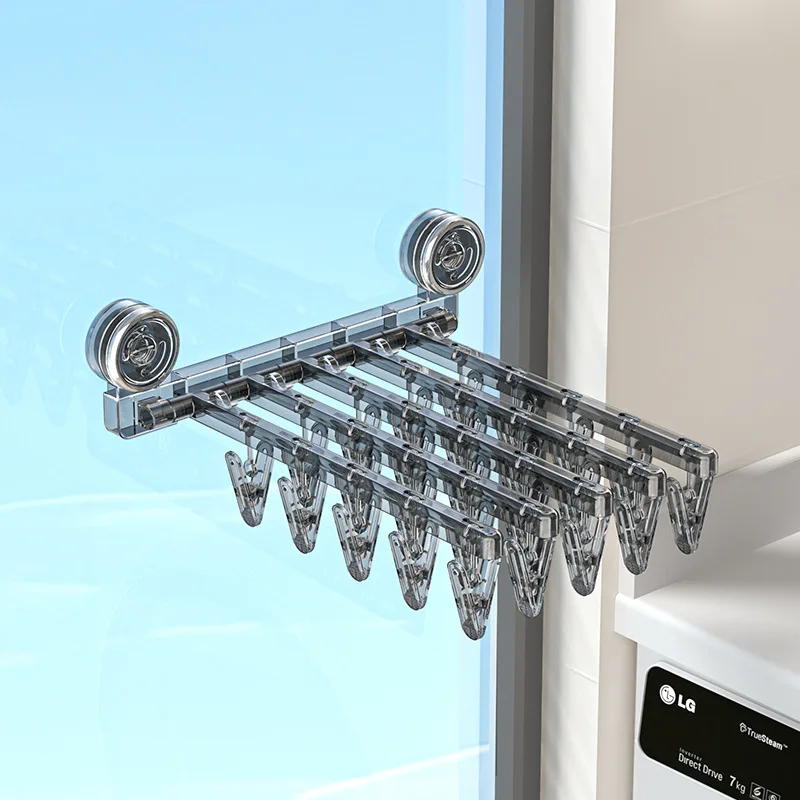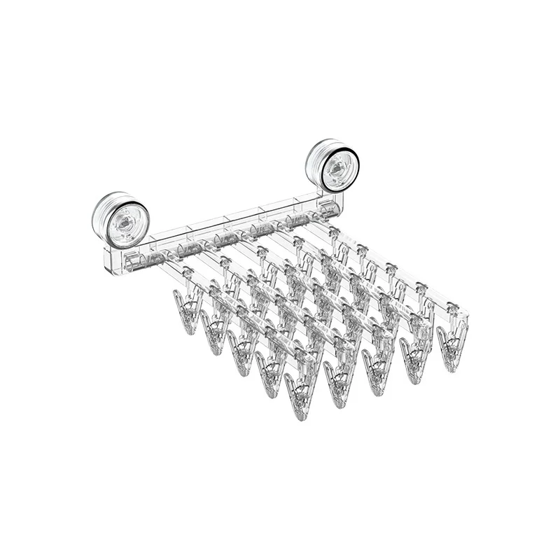 Single-Tier Magic Clothes Drying Rack Balcony Folding Hanger Clips Suction Cup No-Drilling Required Home Sock Drying Plastic