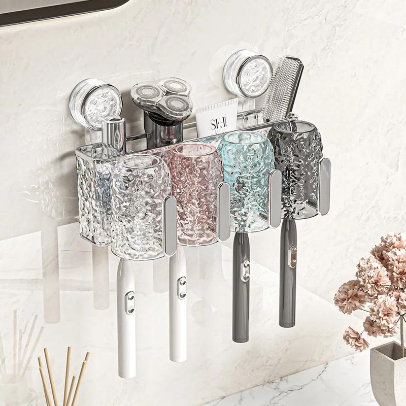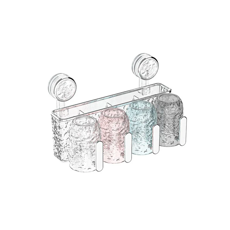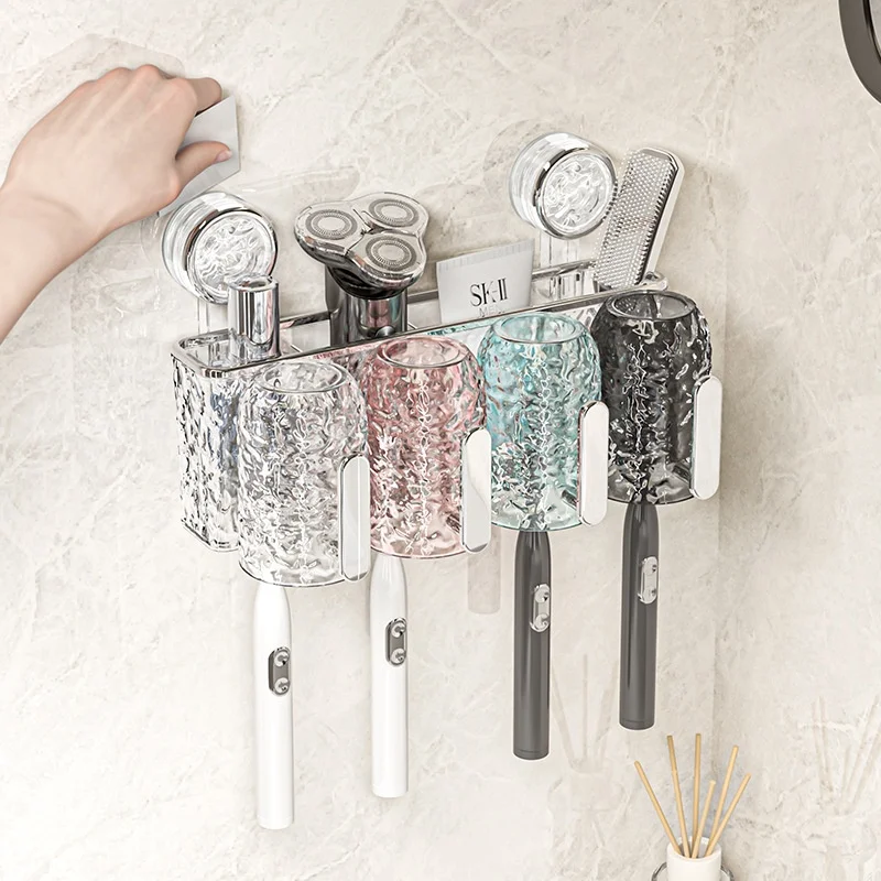High-End Wall-Mounted Plastic Organizer Suction Cup Toothbrush Holder Punch-Free Storage Rack Bathroom Punch-Free Storage Rack