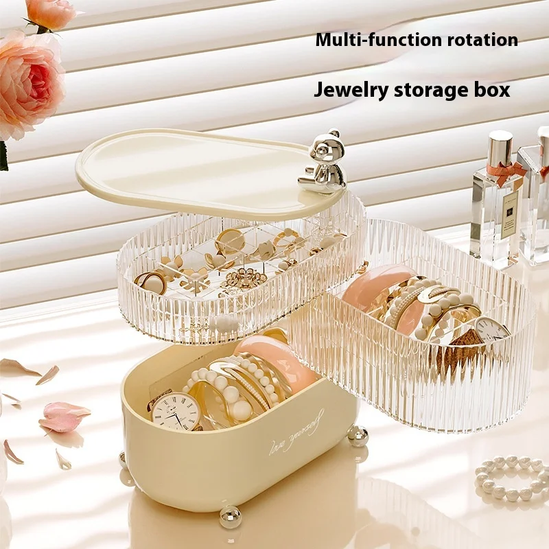 Luxury Rotating Cosmetics Storage Box Dust-Proof Moisture-Proof Lid Household Daily Necessities Sundries Kids' Items Accessible