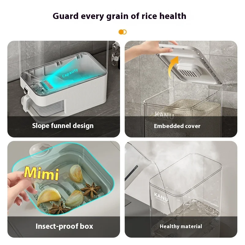 Food Grade PP Plastic Rice Container Insect-Proof Moisture-Proof Press Seal Storage for Kitchen Use Flour Grain Household Items