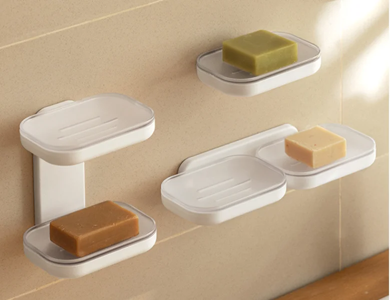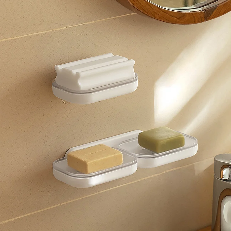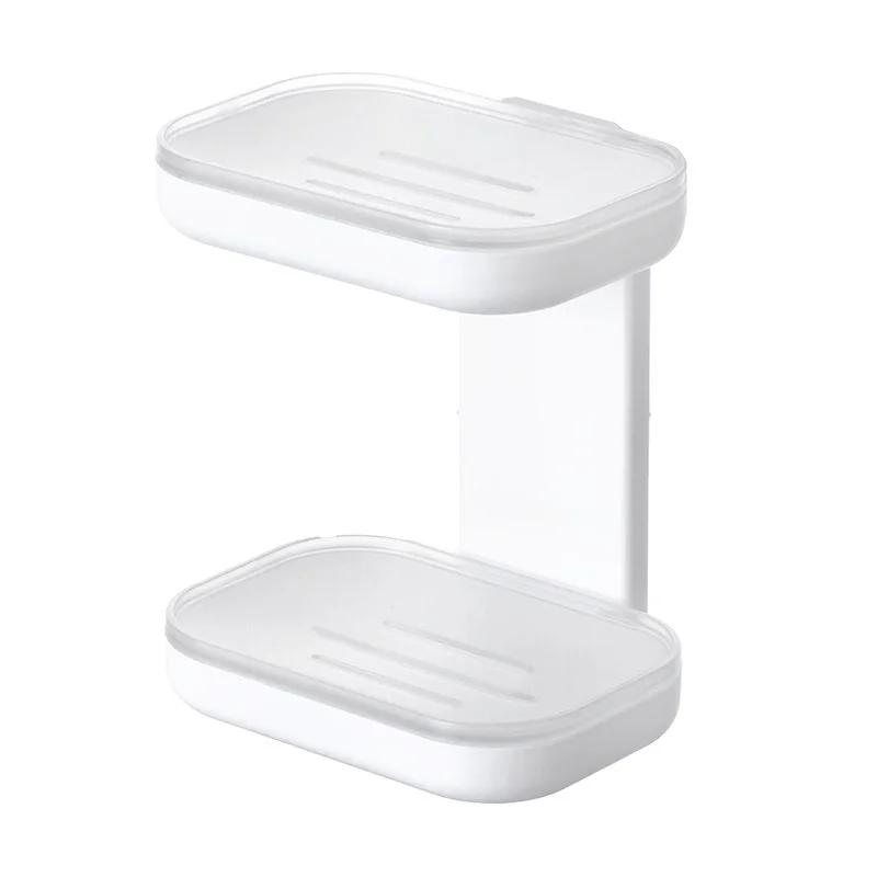 One-Piece No-Drill Wall-Mounted Soap Holder Double-Layer Bathroom Storage Rack with Drainage Dropshipping Feature