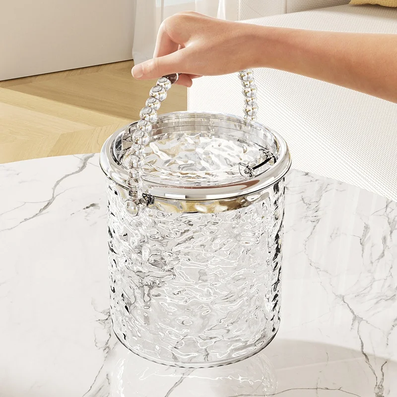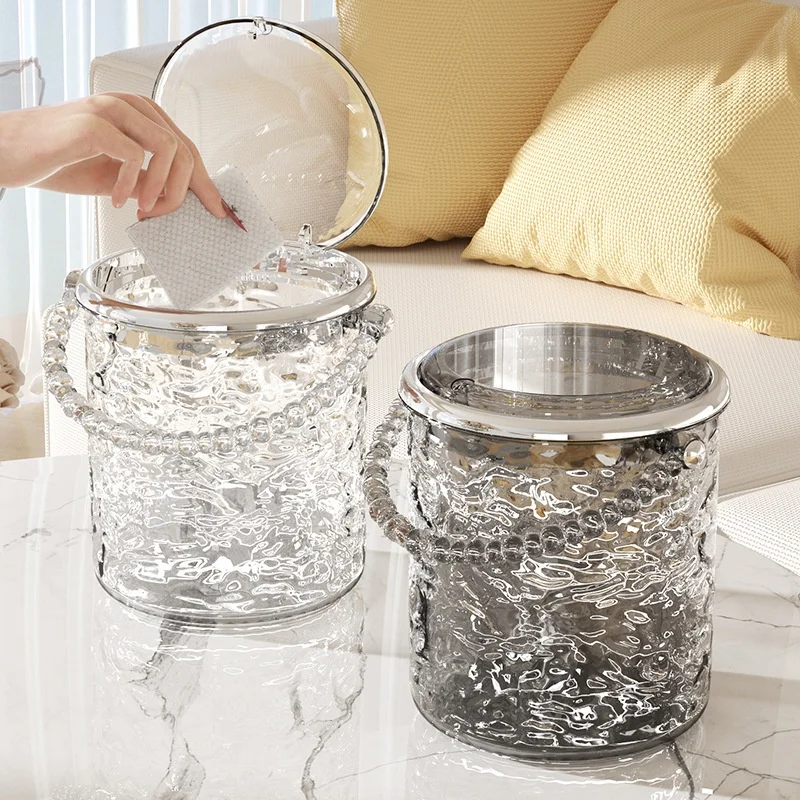 High-End Plastic Cream Style Mini Desktop Trash Can Double-Layer Thickened Open Top Design Household Use Living Room Bedroom